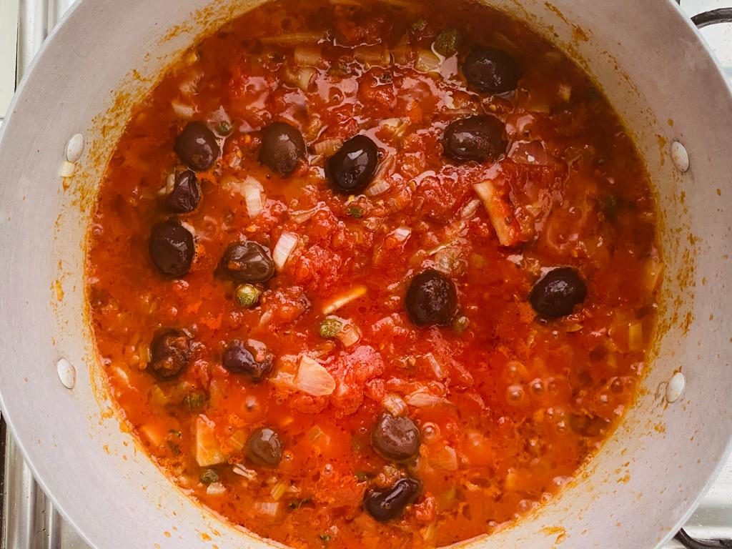 Per prima cosa tritate finemente la cipolla e fatela rosolare per un paio di minuti insieme all’origano. Unite i pelati, i capperi e le olive e fate cuocere per circa 10 minuti. Aggiungete un pizzico di sale e di pepe e unite le fette di pescespada facendole cuocere per circa 15 minuti. Servite subito.