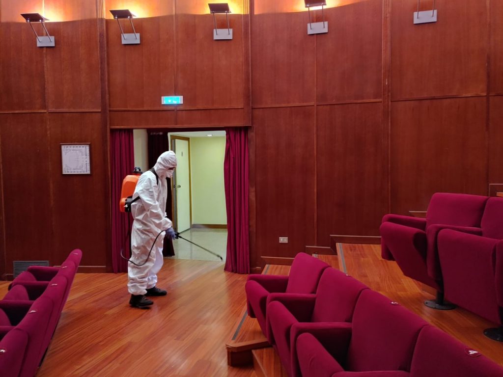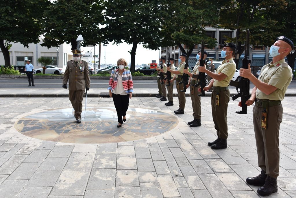 Al termine della cerimonia, i nuclei disinfettori della brigata “Aosta” hanno igienizzato il Teatro Vittorio Emanuele .