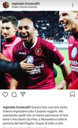 L’addio è doloroso, ecco il messaggio scritto da Reginaldo su Instagram: “questa foto vuol dire tanto. Volevo ringraziare tutto il popolo reggino. Ma soprattutto quelli che mi hanno permesso di fare bene il mio lavoro da Pino, a Musarella a tutte le persone del Sant’Agata. Grazie di tutto a tutti”.