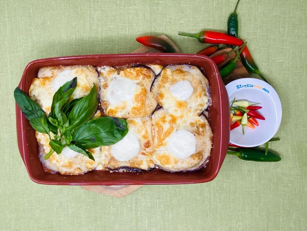 La parmigiana di melanzane bianca è una squisita variante della classica parmigiana calabrese farcita con uova sode, provola, salumi e condita con salsa di pomodoro. Le origini di questo piatto della cucina povera del Sud sono incerte infatti alcune regioni si contendono la paternità. La melanzana arriva in Europa, e poi in Italia, nel XV secolo con gli Arabi ma soltanto nel 1800 viene apprezzata nelle cucine povere e, in seguito, anche in quelle nobili. L’origine siciliana di questo piatto si potrebbe dedurre dal nome “parmiciana” che indica l’insieme dei listelli di legno sovrapposti, come gli strati delle melanzane fritte, che formano una persiana.