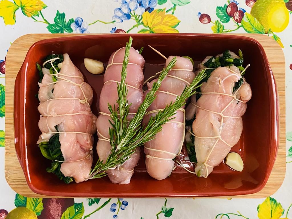 Per rendere più gustosi i petti di pollo farciti potete impanarli con 2 uova ed il pangrattato e poi cuocerli in forno con olio e rosmarino.