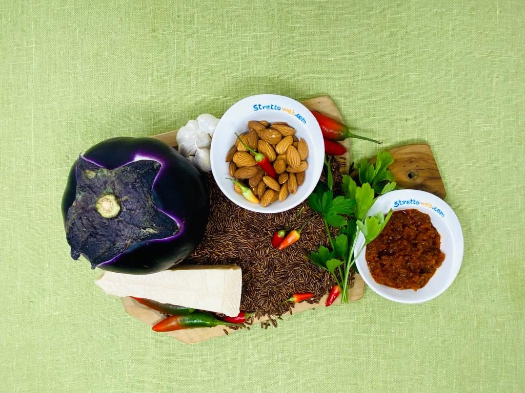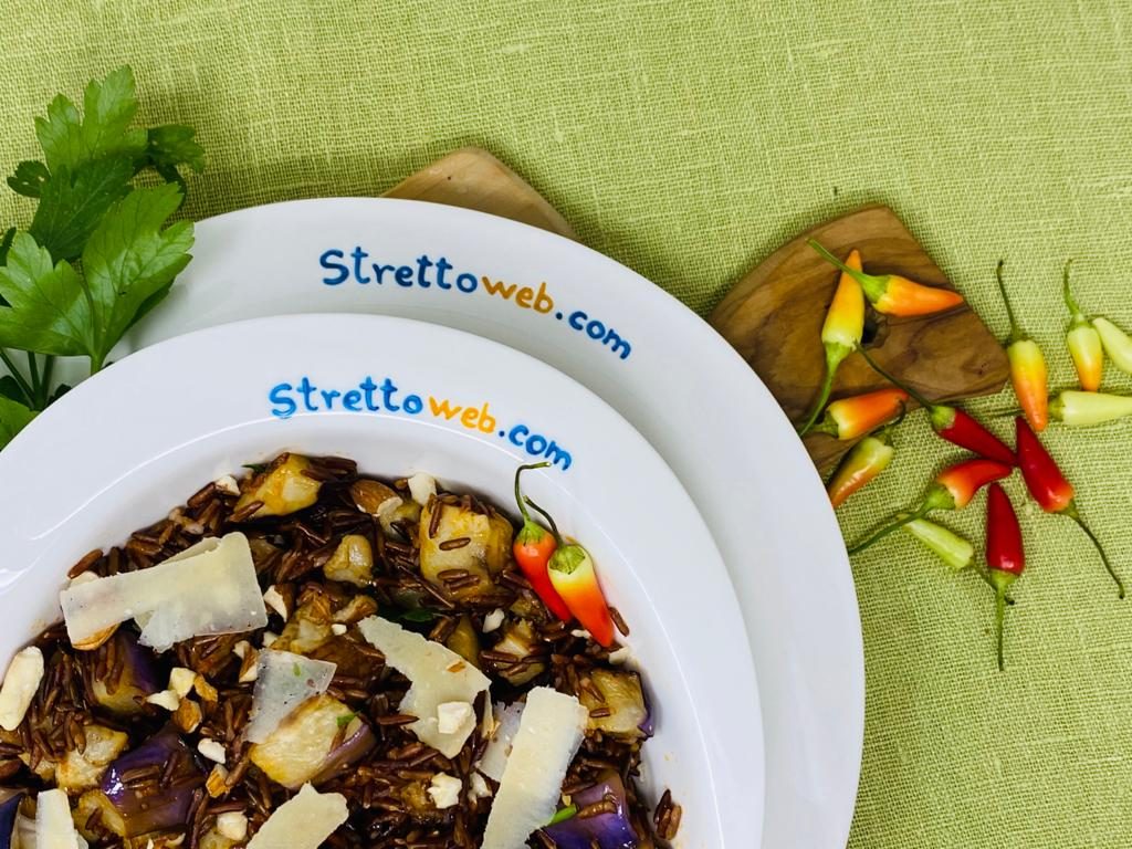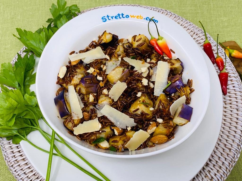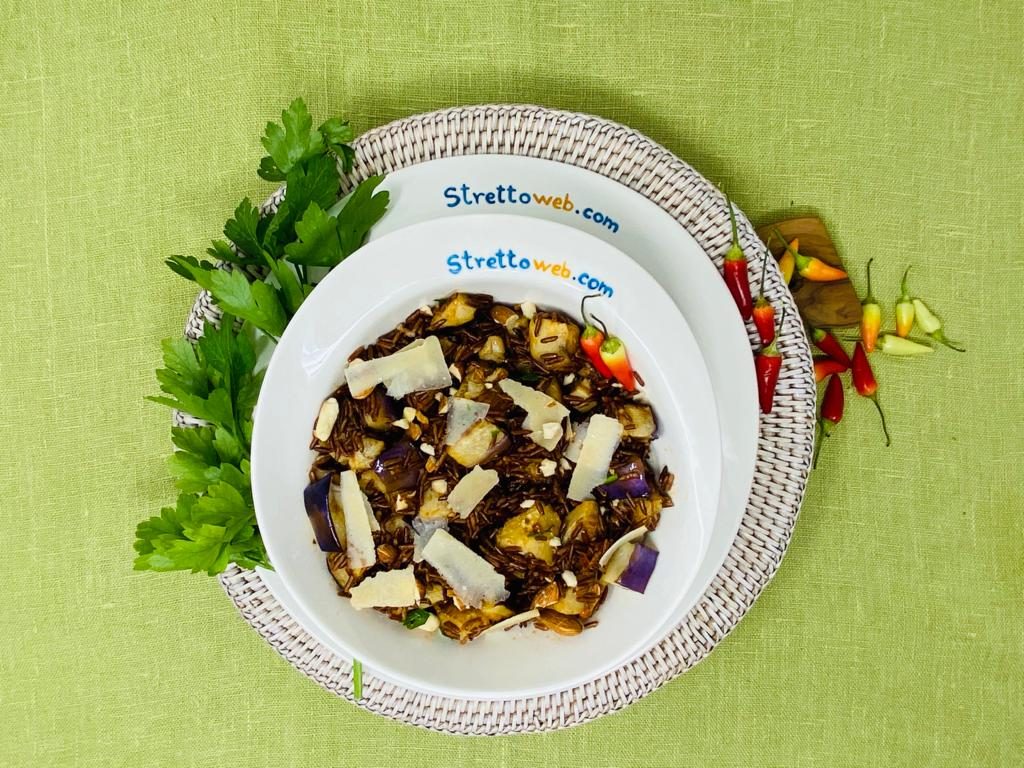 Una insalata di riso, questa, in cui al gusto intenso di melanzane, pomodori secchi e mandorle si uniscono le proprietà del riso rosso integrale, vero concentrato di benessere. Rispetto al riso bianco è ricco di fibre e di antociani, i pigmenti naturali che danno il colore rosso o blu a frutta e ortaggi, che svolgono un’azione antiossidante, antietà, sono utili nel prevenire le malattie degenerative e proteggono l’apparato cardio-vascolare.