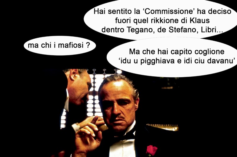 “La vignetta ‘omofoba’ che circola in questi giorni sui social network e su WhatsApp vuole solo fare male ma non mi tocca,nè mi offende. Da quando faccio servizi in Calabria, Sicilia ed Campania nessuno mi ha mai offeso ne apostrofato come gay. Sono quei giochini tipici del web. Anche la parole ‘rikkione’ con cui mi si vorrebbe ingiuriare non mi tocca. Forse anche perché ho una età ma il vittimismo non fa parte del mio carattere”. Lo ha dichiarato Klaus Davi a proposito di una delle vignette che in queste ore circolano sul web e sulle applicazione di WhatsApp Vignette che secondo numerose testate specializzate sono letteralmente ‘esplose’ sui social . “Una di queste scimmiotta il celeberrimo film Il Padrino. Un picciotto si rivolge a don Corleone (il capo mafia interpretato nel film da Marlon Brando) “hai sentito la ‘Commissione’ ha deciso : fuori quel rikkione di Klaus dentro i Tegano, i De Stefano e i Libri.” “Ma chi i mafiosi? Ribatte l’affiliato di don Vito ? “Ma che hai capito coglione idu u pigghiava e idi ciu davano”.” Quella di Marlon Brando faceva seguito a una prima vignetta che raffigurava due pupi del celeberrimo Muppet Show. Nella divertente e sarcastica scenetta satirica, Statler dice a Waldorf: “Lo Stato italiano ci ha messo 13 anni per arrestare il plurikiller Gino Molinetti” (riferendosi al fatto che incredibilmente il killer Molinetti sia stato lasciato libero e sostanzialmente indisturbato per 13 lunghi anni) . Pronta la replica di Waldorf: “Ma sono bastate solo due settimane per fermare Klaus Davi” (riferendosi alla esclusione di Klaus Davi dal consiglio comunale dopo che la stessa Commissione elettorale di Reggio Calabria aveva comunicato alle agenzie di stampa il 25.09 alle ore 15.17 che la sua lista aveva superato la soglia del 3 per cento). . E la chiusa inequivocabile: “È proprio vero che questo Klaus Davi non conta un c….”. Secondo numerose testate entrambe le ‘scenette’ diventate un vero e proprio mini evento nella galassia di internet. Quella dei Muppet Show si riferisce esplicitamente al caso degli ‘scrutini pazzi’ a Reggio Calabria dove per contare le schede la Commissione elettorale locale ha impiegato tre lunghe settimane un record negativo mai visto nella storia della Repubblica italiana”.