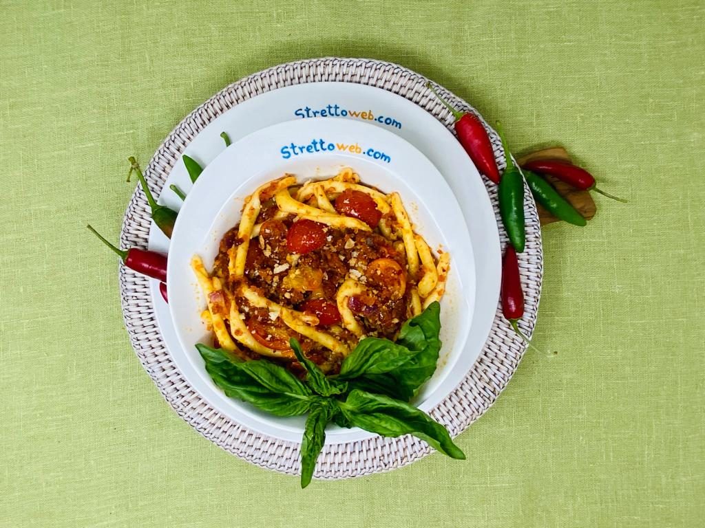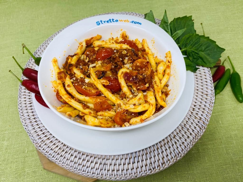 I “maccarruni” calabresi, protagonisti di questo primo gustoso, sono la pasta della tradizione contadina realizzata con semola di grano duro ed acqua, tagliata a tubicini, arrotolata in modo artigianale su un bastoncino sottile e chiamata, anche, fileja. La nostra cucina include molte ricette tanto semplici quanto buone e questo piatto ne è la dimostrazione: la mollica, da sempre utilizzata al posto del parmigiano, arricchisce questa pasta ed è il cuore di molte preparazioni tradizionali. La ‘nduja, che nasce dalla necessità di utilizzare tutto, anche le parti meno pregiate del maiale, è oggi uno dei simboli della Calabria.