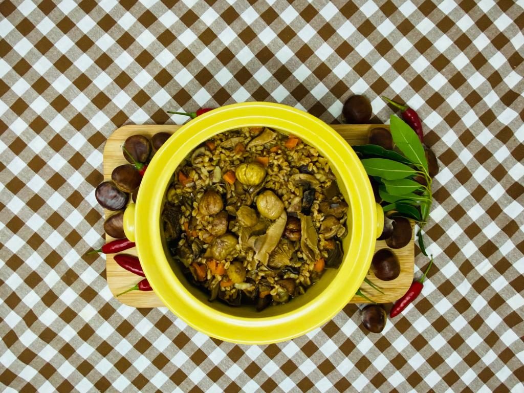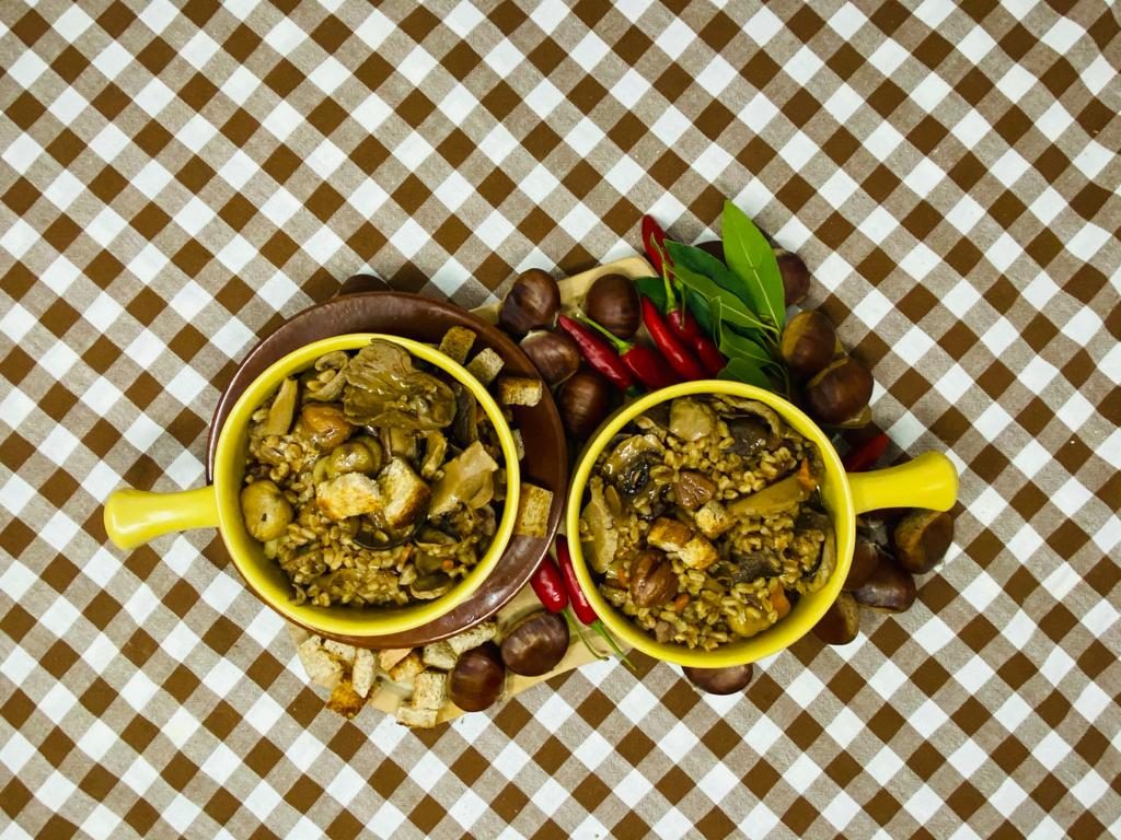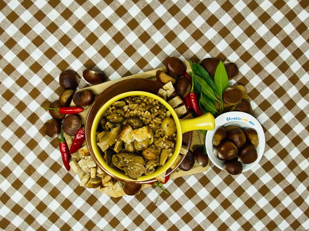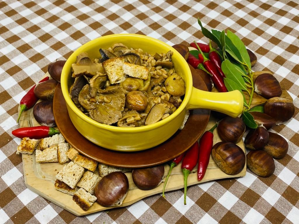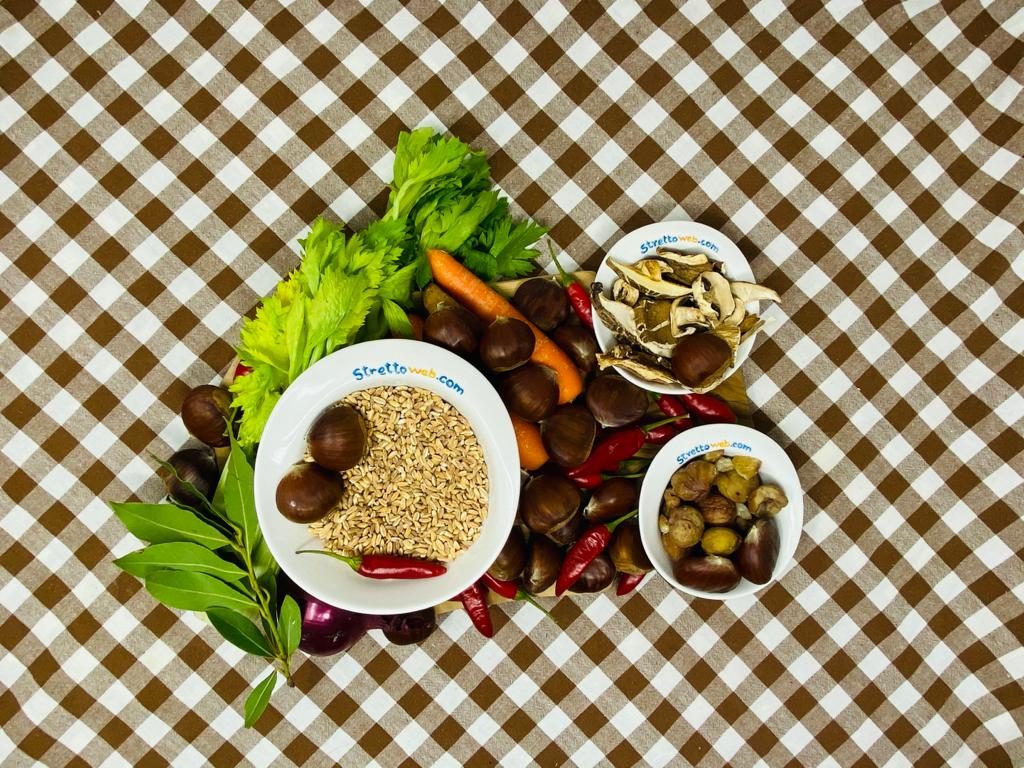 Ricchissimo di fibre, povero di grassi e con contenuto proteico maggiore rispetto ad altri tipi di frumento, il farro, la cui coltivazione risale a 8000 anni fa, si presta nella preparazione di zuppe o minestre e si abbina perfettamente ai funghi porcini. Ricchi di vitamine, minerali, acido folico e betacaroteni utili a rafforzare il sistema immunitario, i funghi funzionano da antibiotico naturale. In Calabria si trasformano in una squisita conserva sott’olio e sono inclusi fra i Prodotti Agroalimentari Tradizionali. Le castagne calabresi che completano questa zuppa, dolcissime e con un elevato valore nutritivo, sono un antico prodotto locale che ha sostentato le popolazioni montane nei periodi di carenza di cibo.