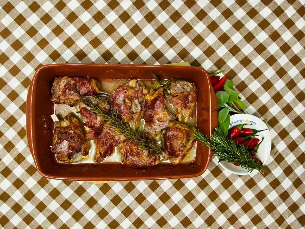 Una ricetta tradizionale ricca di sapore, questa, che nasce dalla cultura pastorale e contadina dei territori aspromontani in cui le carni ovine e caprine avevano un ruolo primario: una alimentazione soprattutto vegetariana, quella dei pastori, fatta eccezione per i formaggi e per le carni di capra e di pecora che si consumavano in occasione delle feste religiose e familiari. Fra i piatti fortemente legati alla vita religiosa, l’agnello era abitualmente cucinato per festeggiare la Pasqua.