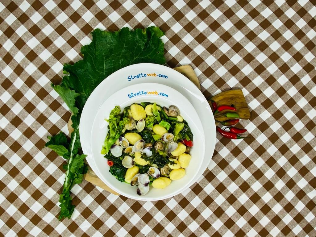 Un primo piatto molto saporito, gli gnocchi alle vongole e cime di rapa, in cui la piacevole consistenza degli gnocchi, il sapore intenso delle vongole e quello leggermente amaro delle cime di rapa creano un mix davvero unico. Come in altri piatti, l’unione di sapori mare terra offre davvero ottimi risultati!