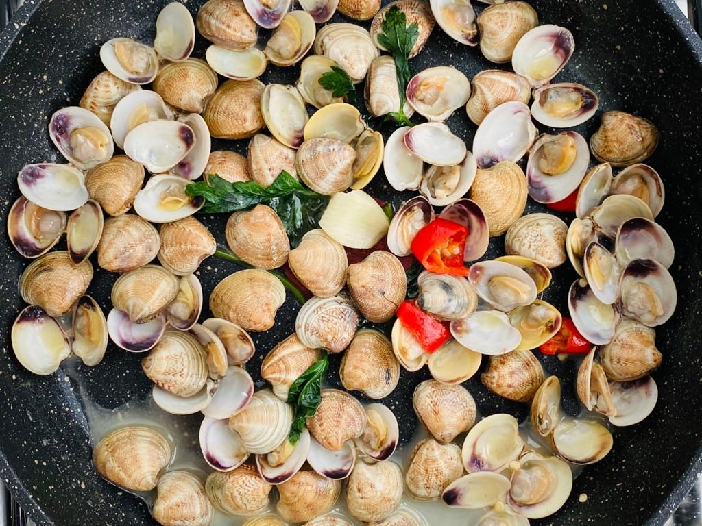 Lasciate le vongole in una ciotola con acqua e sale e, nel frattempo, scaldate l’olio con aglio e peperoncino in una padella e fate appassire le cime di rapa per circa 10 minuti, dopo averle lavate e pulite. In un’altra padella fate rosolare uno spicchio d’aglio con olio, prezzemolo e peperoncino, aggiungete un po’ di vino bianco e le vongole e coprite col coperchio per 5 minuti finchè non saranno aperte. Fate bollire abbondante acqua salata per cuocere gli gnocchi, sgusciate le vongole lasciandone una piccola parte col guscio e usate l’acqua di cottura filtrata delle vongole per insaporire le verdure. Scolate gli gnocchi in padella col condimento ed unite le vongole. Amalgamate tutto e servite subito.