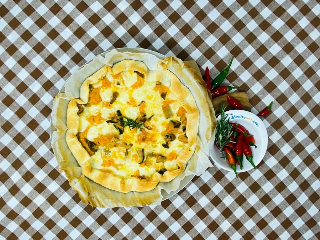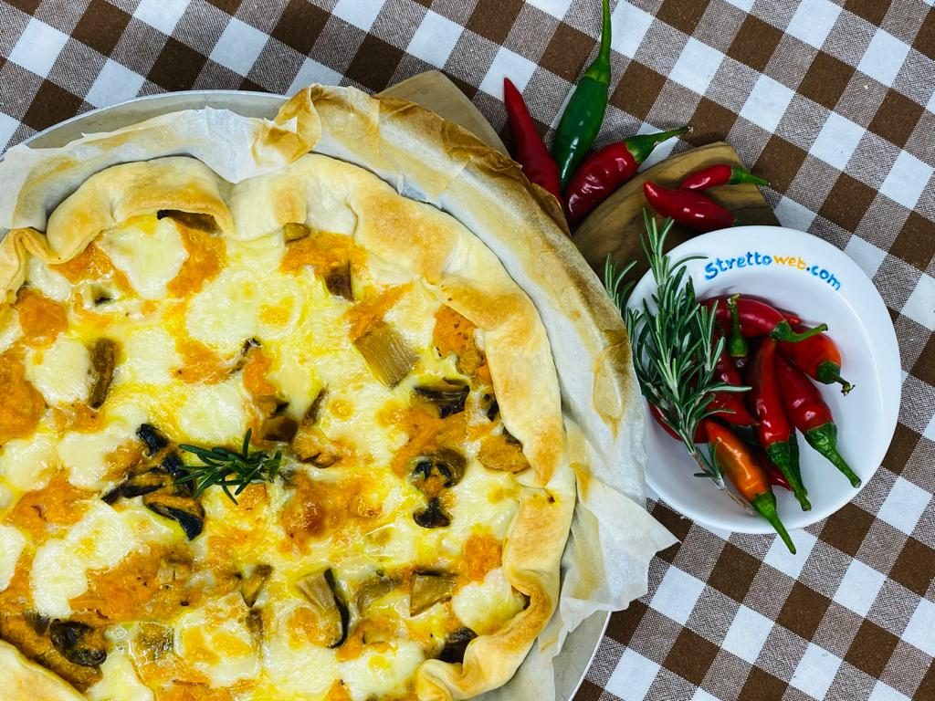 Uno squisito mix autunnale questa torta salata: ortaggi ipocalorici ma ricchi di vitamine e minerali le zucche, arrivate in Europa dopo la scoperta dell’America, si prestano ad una grande varietà di preparazioni fra cui risotti, vellutate o lasagne. La loro dolcezza si sposa perfettamente al sapore deciso dei funghi porcini che i calabresi sanno trasformare in una squisita “conserva sott’olio” conosciuta ormai ovunque ed inserita fra i Prodotti Agroalimentari Tradizionali.