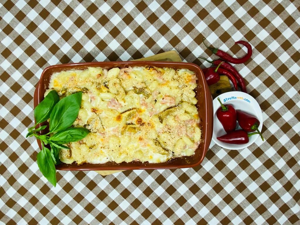 Il prosciutto crudo può sostituire quello cotto in questa squisita pasta al forno.