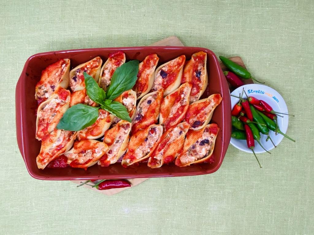 I conchiglioni sono un formato di pasta che stimola la creatività perché possono essere farciti con mille ingredienti diversi. Una pietanza golosa, questa, il cui ripieno corposo unisce in modo eccezionale alcuni dei prodotti tipici calabresi.