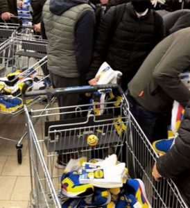 Scarpe Lidl, caccia all’ultimo capo – Sembra un corto di Zero Calcare, ma nei 660 punti vendita sparsi in 19 regioni d’Italia (solo la Basilicata è Lidl free), la ‘Lidl Fan Collection‘ è andata a ruba. Aperte le porte dei supermercati, la gente si è riversata in massa verso il reparto dedicato alla vendita dei capi: ressa, sorpassi stile Formula 1 alla guida del proprio carrello, spallate alla vecchia di turno che stava per mettere le mani sull’ultimo paio di calzini. Il distanziamento sociale va a farsi benedire (Covid? Quale Covid?!). Il panico si genera appena si sparge la voce che ogni cliente non può prendere più di un capo, proteste che nemmeno un nuovo DPCM di Conte contenente la nuova ‘zona nera‘ possono generare. La cassiera, già con una crisi di nervi di primo mattino, è costretta a calmare le acque dall’altoparlante: nessun tetto alle vendite, “prendete e acquistatene tutti”. I clienti, soddisfatti di aver speso più per le scarpe Lidl che per sfamare la propria famiglia, tornano a casa contenti. Se siete arrivati fin qui senza essere già corsi al Lidl anche voi, sicuramente vi starete chiedendo il motivo di tutto ciò.