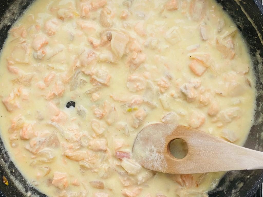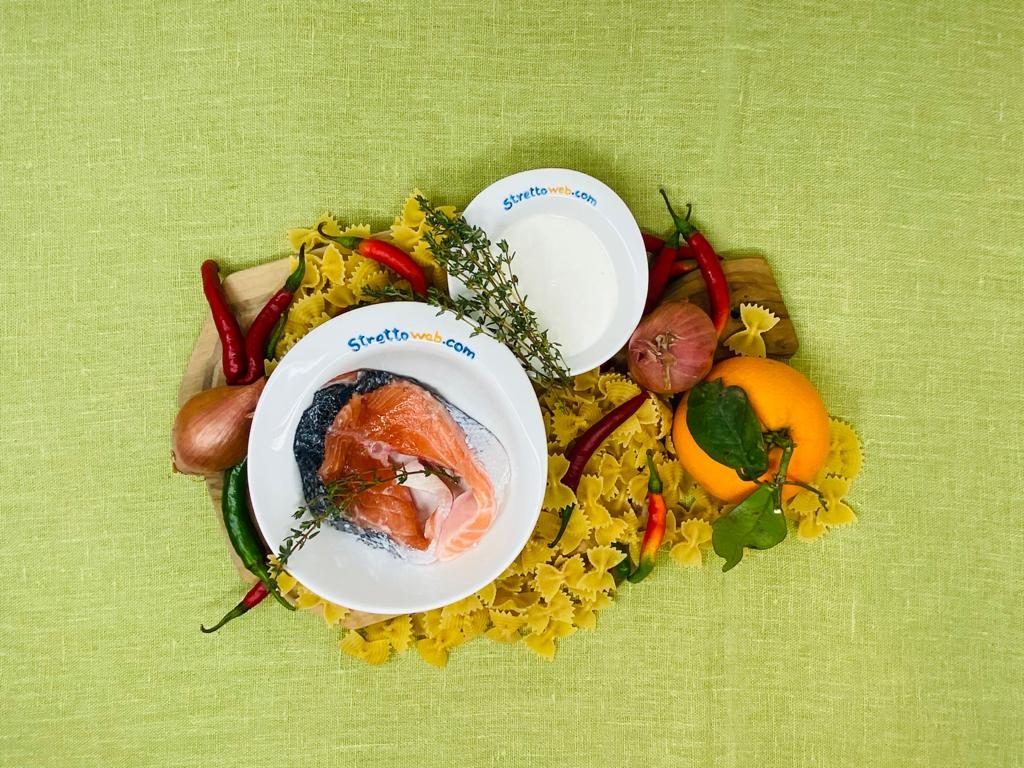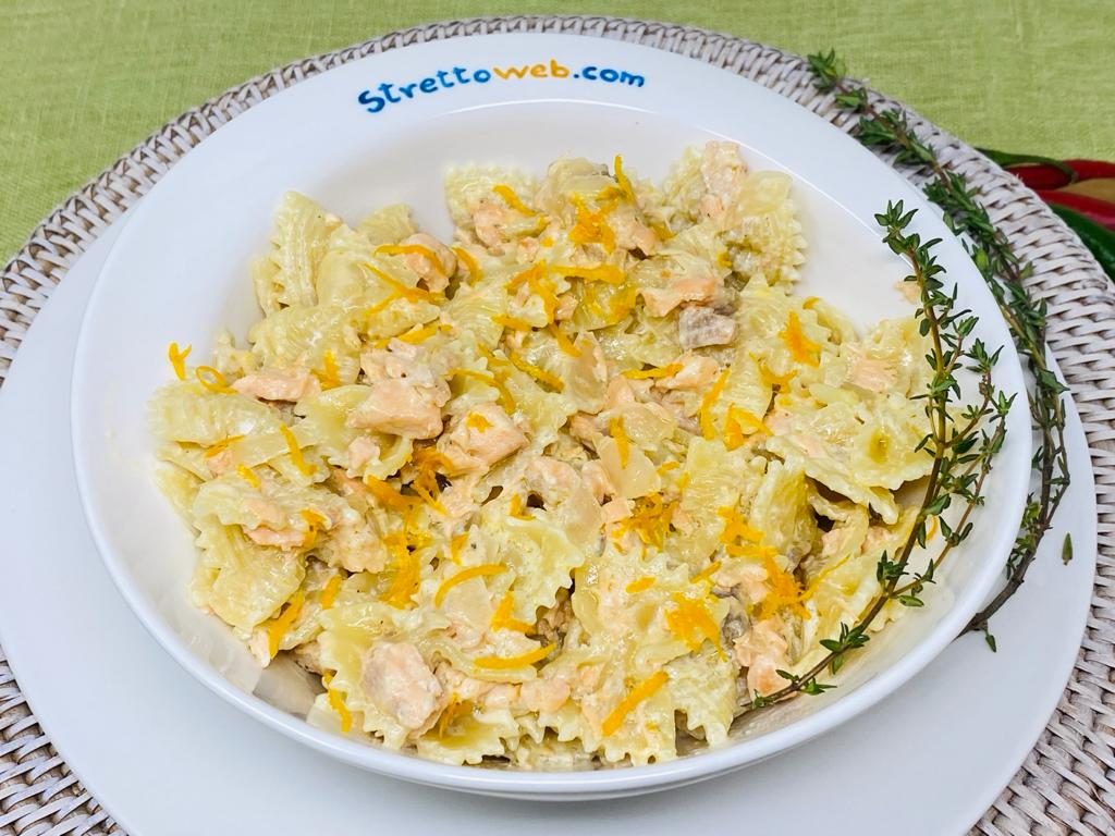 Una variante più leggera, senza panna, si prepara con i pomodorini e la cipolla rossa di Tropea rosolati in padella prima di aggiungere il salmone affumicato a dadini e la pasta.