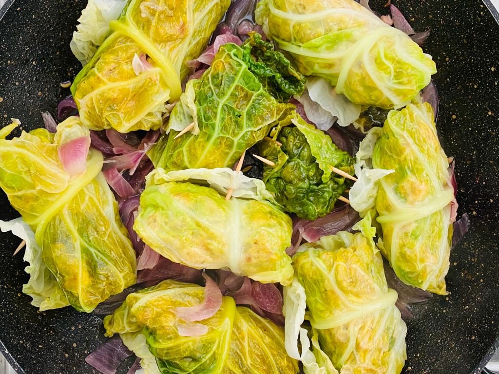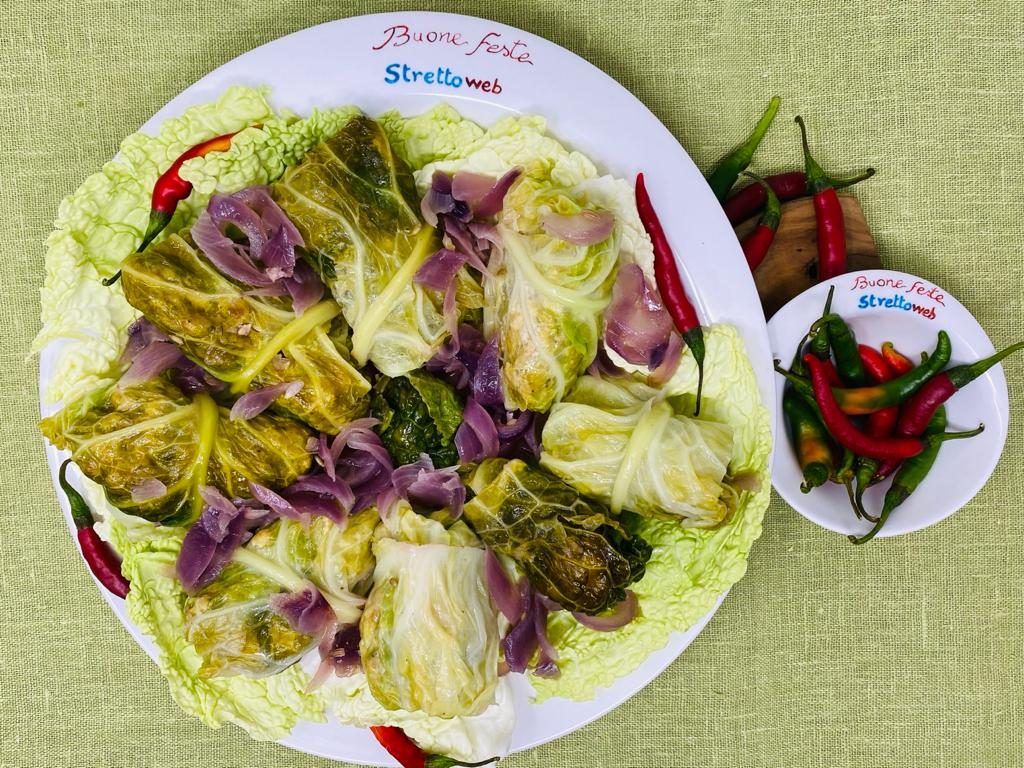 Un secondo piatto saporito e sfizioso, questi involtini, in cui il gusto intenso della salsiccia calabrese si sposa bene alla verza ed alla scamorza filante che rende ancora più gustoso il ripieno.