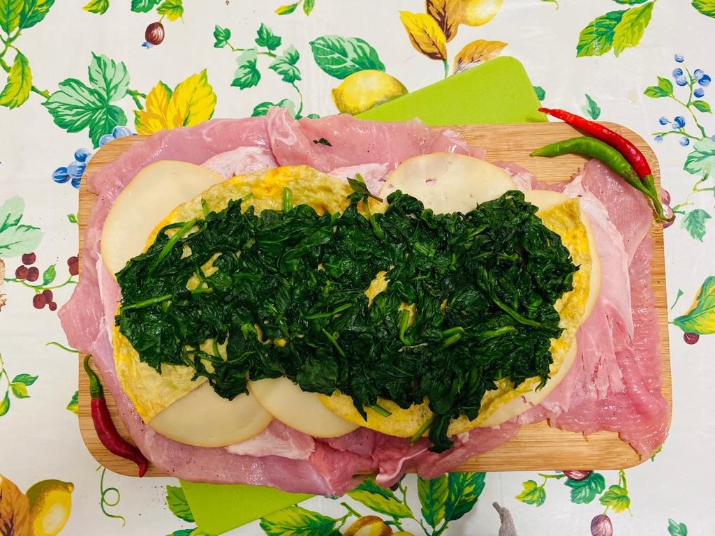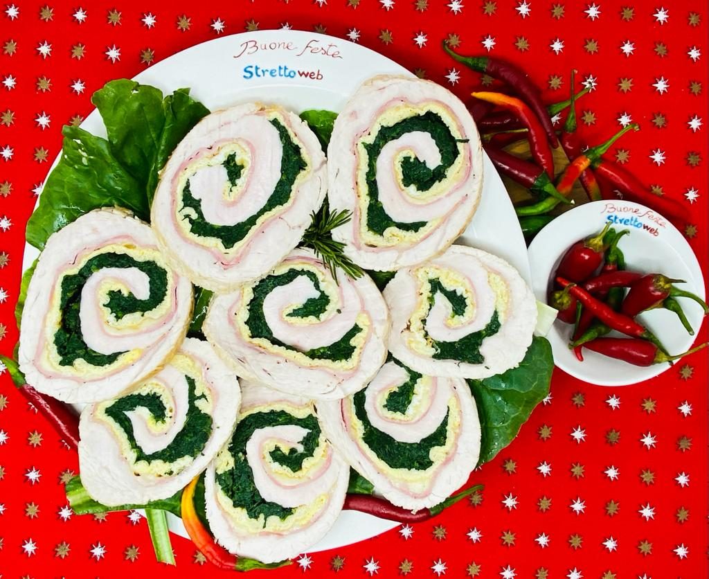 Un secondo ricco e nutriente, questo, merito di una carne che racchiude zinco, ferro, triptofano e vitamine del gruppo B. Se gli spinaci e la frittata rendono morbido e succoso questo rotolo, il prosciutto cotto e la scamorza filante lo arricchiscono di gusto. La sua farcitura cambia giocando con gli abbinamenti e due varianti sono, per esempio, il rotolo di tacchino con melanzane grigliate, prosciutto cotto e fontina e quello farcito con friarielli e salsiccia.