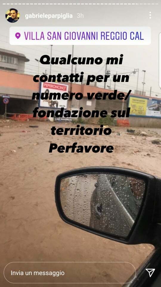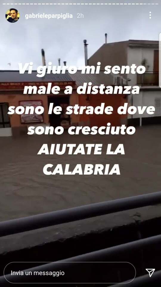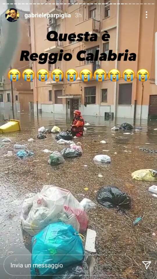 “Vi giuro, mi sento male a distanza. Queste sono le strade dove sono cresciuto. Aiutate la Calabria”, è questo il grido del giornalista Gabriele Parpiglia. Lo scrittore originario di Reggio Calabria, molto presente nelle pagine di gossip e molto conosciuto nel mondo dei vip, sui social ha postato molte foto del violento maltempo che si è abbattuto sulla città. Da Villa San Giovanni a Pellaro, molte zone del Comune e della Provincia reggina sono messe in ginocchio dal maltempo, questo dispiace molto al conduttore televisivo che sui social da diverse ore sta facendo luce sulla situazione. Il suo obiettivo è che se ne parli a livello nazionale, in modo da arrivare se possibile anche alle fonti di Governo, che possono dare un aiuto concreto alla popolazione oggi in difficoltà. In alto le FOTO con gallery di tutte le stories pubblicate su Instagram da Parpiglia.