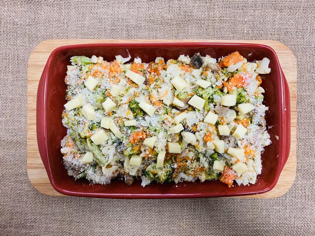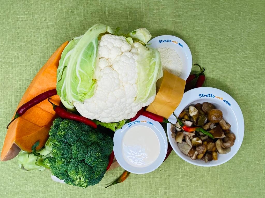 La pasta al forno con verdure racchiude le mille proprietà degli ortaggi di stagione: i cavolfiori, un vero concentrato di vitamine, sali minerali e potenti antiossidanti si uniscono ai broccoli, ipocalorici ed energizzanti, ricchi di infinite qualità nutrizionali. La dolcezza della zucca, il gusto intenso dei funghi e la scamorza filante completano questo piatto sano e goloso al tempo stesso.