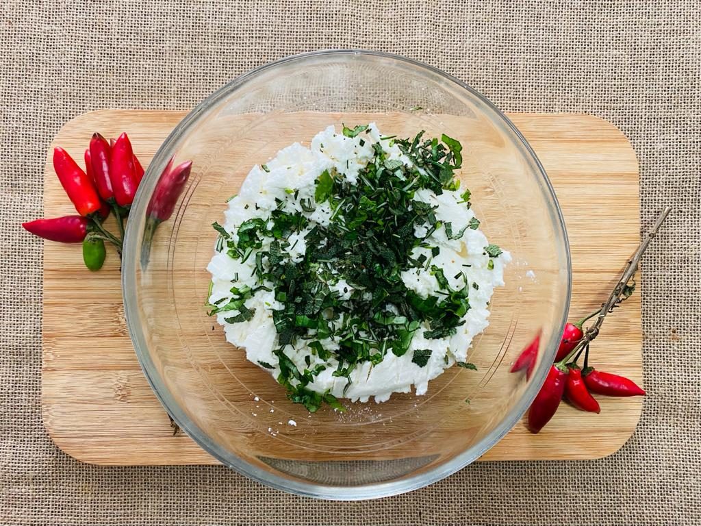 Mettete a bollire l’acqua salata per cuocere gli spaghetti e contemporaneamente tritate bene le erbe profumate. Mettete la ricotta in una ciotola capiente e lavoratela insieme al trito. Aggiungete un po’ di acqua di cottura per ammorbidire la crema di ricotta e unite la pasta, dopo averla scolata, mescolando bene. Completate con una spolverata di pepe.