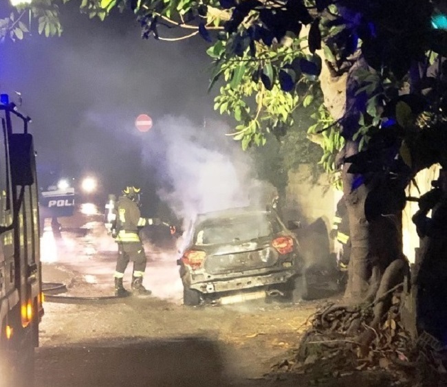 Intorno alle ore 20:10 di questa sera una macchina ha preso fuoco in via Vallone Mariannazzo a Reggio Calabria. Sul posto sono intervenuti i Vigili del Fuoco che hanno provveduto immediatamente a spegnere le fiamme ed sono intervenuti le forze dell’ordine per effettuare i rilievi del caso per accertare la natura del rogo. In alto la FOTOGALLERY completa.