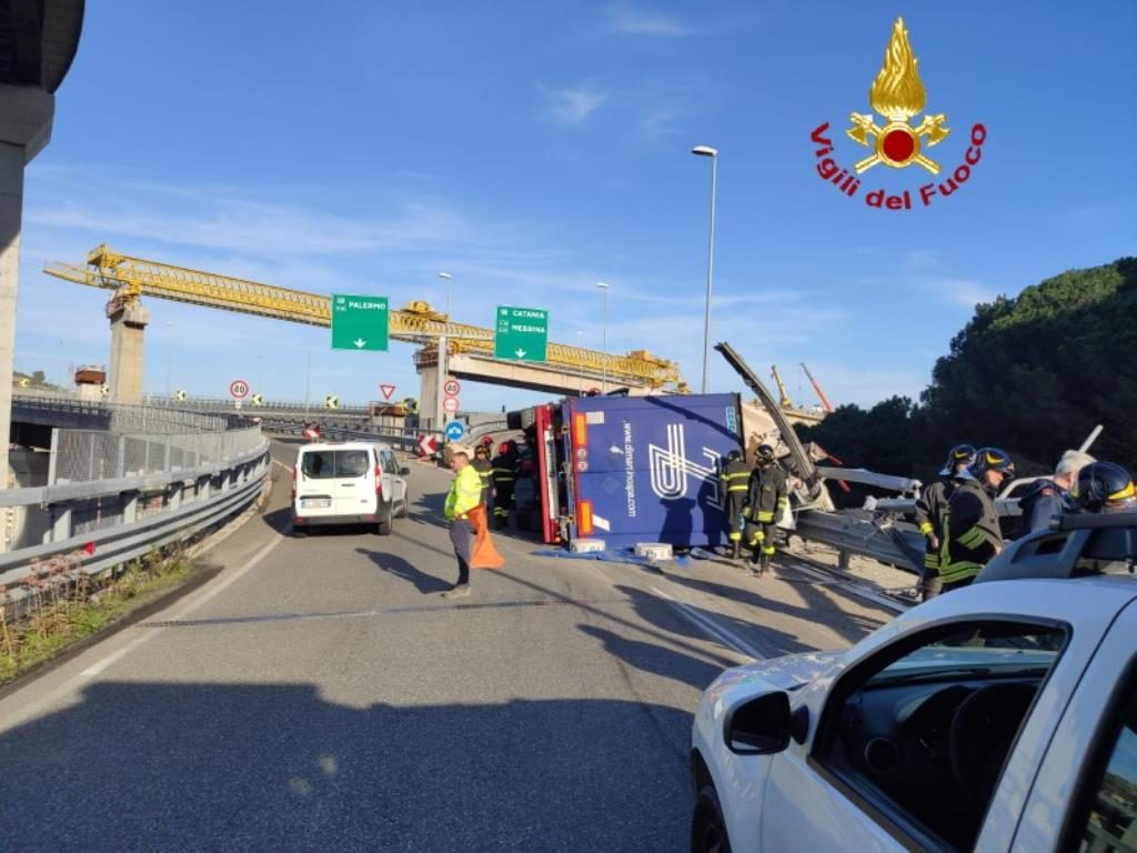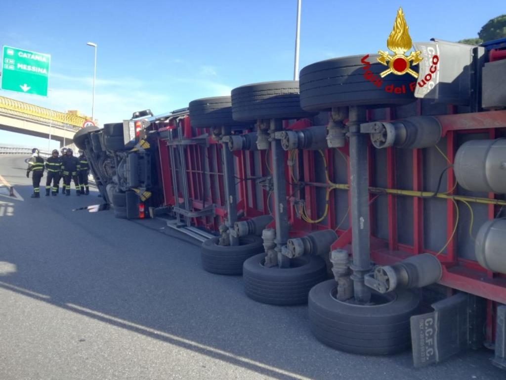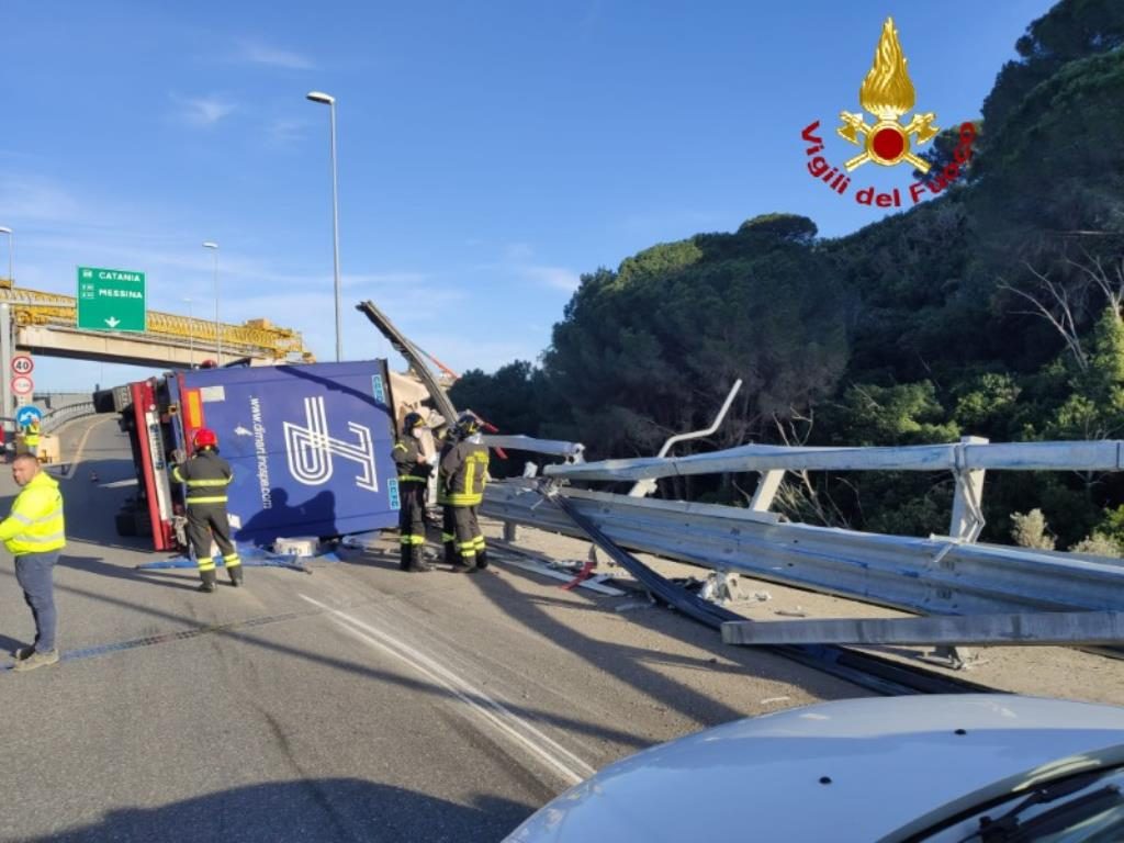 Oggi intorno alle 14.45 i Vigili del fuoco sono intervenuti per un ribaltamento di un tir con rimorchio nel tratto autostradale tra i due svincoli di Boccetta e Giostra, direzione Catania. Due le squadre intervenute, provenienti dal presidio fisso CAS boccetta (Consorzio autostrade siciliane) e dal vicino Distaccamento Nord del Comando Provinciale VF di Messina. Le cause sono in fase di accertamento e fortunatamente nessuna grave conseguenza per il conducente e per chi in quel momento transitava nelle immediate vicinanze. I soccorritori sono ancora sul posto per eliminare il prima possibile la situazione di pericolo e per decongestionare la rete autostradale. Sul posto la Polstrada. In alto la FOTOGALLERY completa.