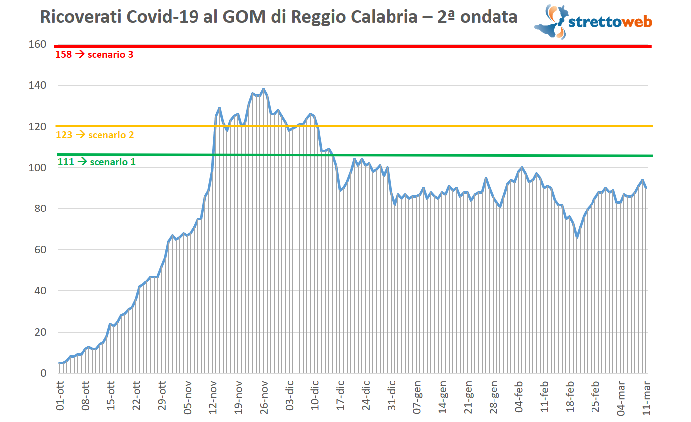 In conclusione il Dott. Macheda ha ricordato che la situazione dei ricoveri continua ad essere stabile ormai da diversi mesi, sia per quanto riguarda i ricoveri in terapia intensiva (8 secondo i dati aggiornati all’11 marzo), che per i ricoveri ordinari (82 al Gom). Con questi numeri l’ospedale metropolitano resta ben al di sotto del limite dei 111 posti letto occupati, ovvero il cosiddetto scenario 1. Nessuna preoccupazione esiste dunque per l’ospedale reggino, che può continuare ad affrontare il Coronavirus con attenzione, ma senza dover assistere ad alcuna emergenza.