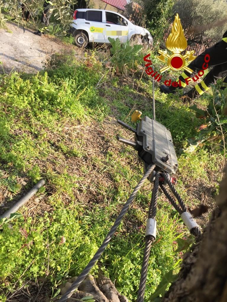 Oggi i Vigili del fuoco del Distaccamento di Patti (ME) sono intervenuti con Autofurgone/boschivo e Autopompa serbatoio per un incidente stradale a Montagnareale, in contrada Bonavita. Tempestivo è stato il soccorso, intorno alle ore 14, per mettere in salvo una portalettere alla guida di una Fiat Panda che, durante la consegna della posta, nell’affrontare una discesa molto ripida, ha perso il controllo del mezzo, andando a sbattere contro il guard-rail. La squadra arrivata sul posto ha immediatamente messo in sicurezza l’auto rimasta in bilico utilizzando un attrezzo denominato tir-fort. Fortunatamente la conducente è rimasta illesa. Sul posto anche i Carabinieri di Patti e la Polizia municipale di Montagnareale.