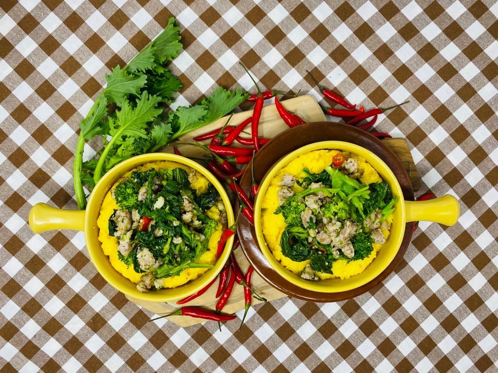 Ortaggi autunnali con alto contenuto di polifenoli antiossidanti, minerali, vitamine ma anche omega 3 e acido folico, le cime di rapa appartenevano alla cucina povera ed oggi sono l’ingrediente prelibato di molti piatti grazie al loro gusto particolare e leggermente piccante. Non sono soltanto buone, infatti, sono alleate dell’organismo grazie alla loro funzione depurativa e detossificante. Ideale è accostarle alla salsiccia calabrese ma sono squisite anche con la pasta e le acciughe o la pancetta e gustosissime da sole ripassate in padella col peperoncino. La polenta che le accompagna, dal latino puls, un “mix di cereali e farro” utilizzato al tempo dei Romani, è estremamente saziante ed economica e per questo è stata allungo il cibo dei poveri causando, purtroppo, la pellagra, una malattia devastante dovuta alla carenza di vitamine del gruppo B. Il suo accostamento alle cime di rapa ed alla salsiccia è sicuramente uno fra i più riusciti.