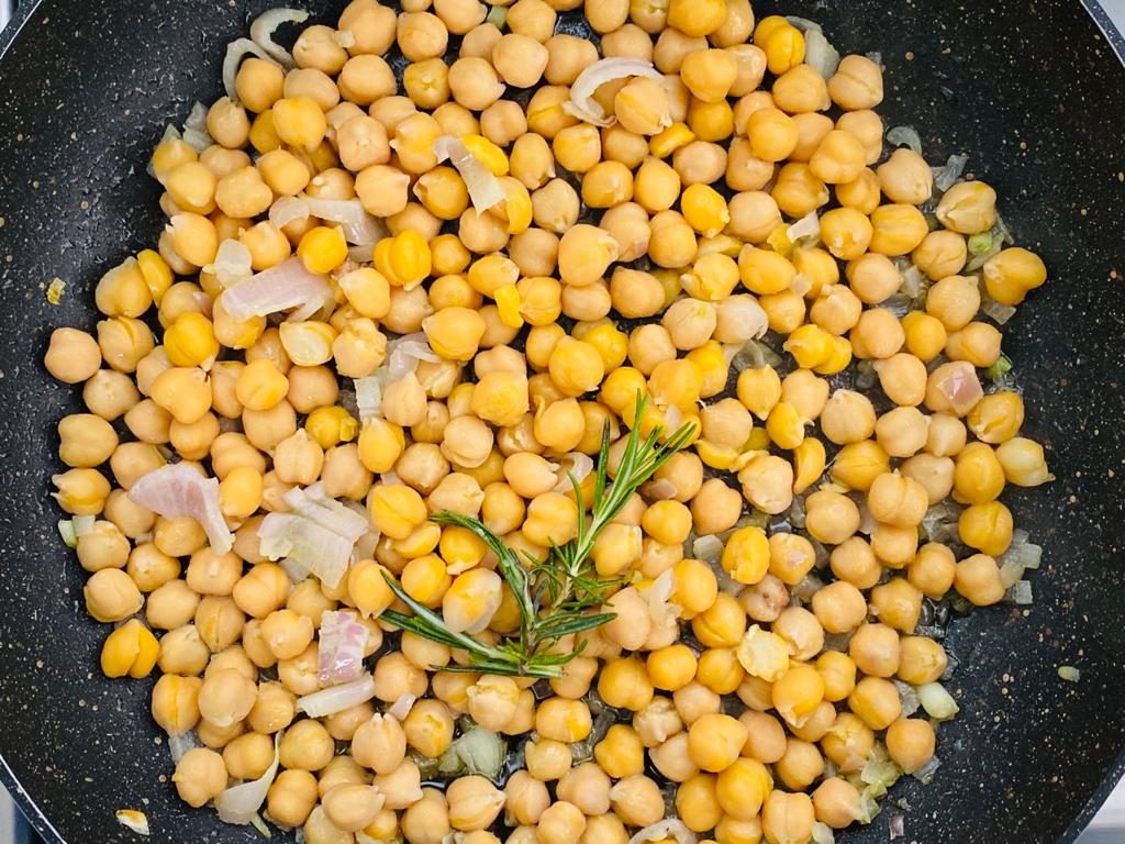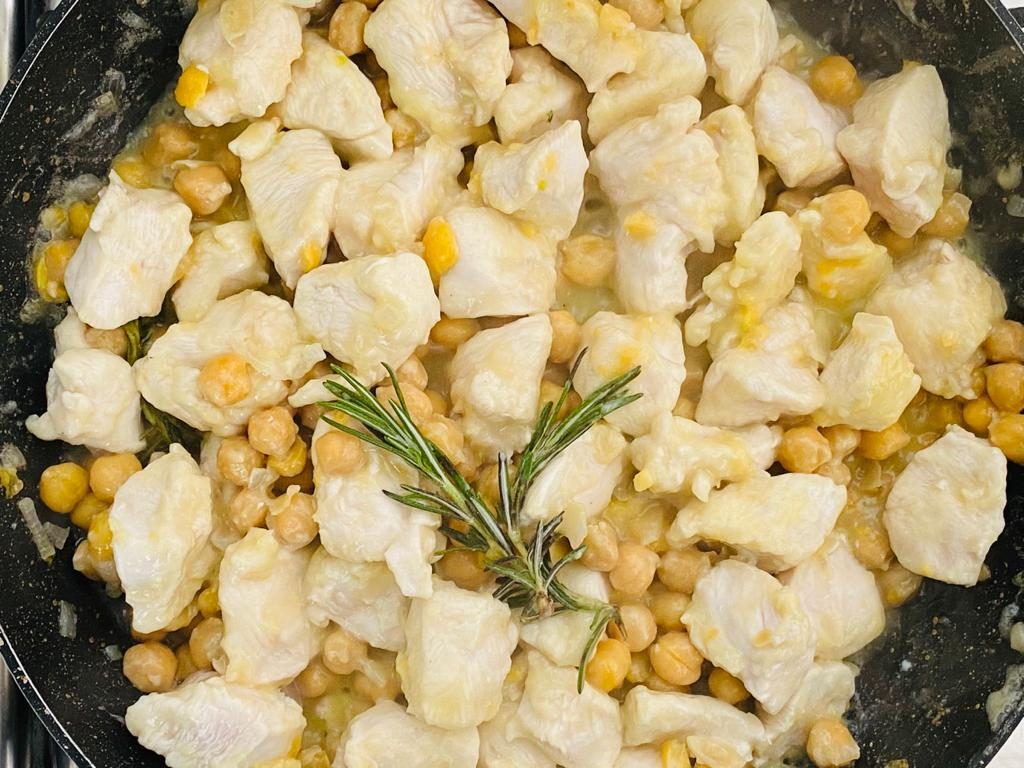 Potete arricchire il piatto con pancetta affumicata a cubetti da unire in padella al pollo ed ai ceci.