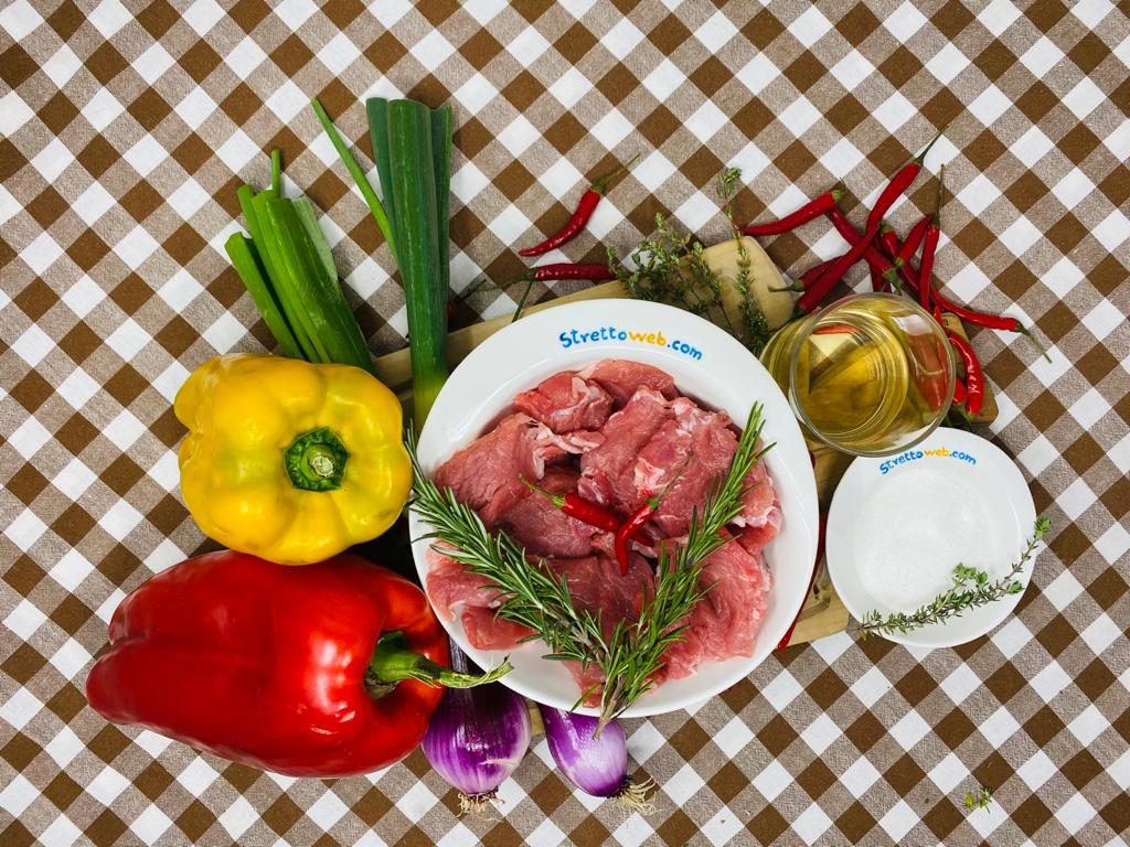 Lavate i peperoni, privateli dei filamenti e dei semi e tagliateli a strisce. Fate rosolare in padella con un filo d’olio un cipollotto affettato finemente e poco dopo unite i peperoni cuocendoli a fiamma moderata per 15 minuti ed aggiungendo poca acqua. Nel frattempo, in un’altra padella rosolate le fettine di maiale infarinate prima di unirle ai peperoni. Regolate di sale ed aggiungete l’aceto e lo zucchero, precedentemente mescolati. Proseguite la cottura per 15 minuti e servite subito il filetto di maiale in agrodolce.