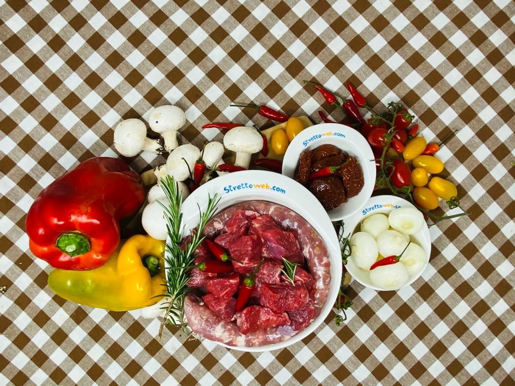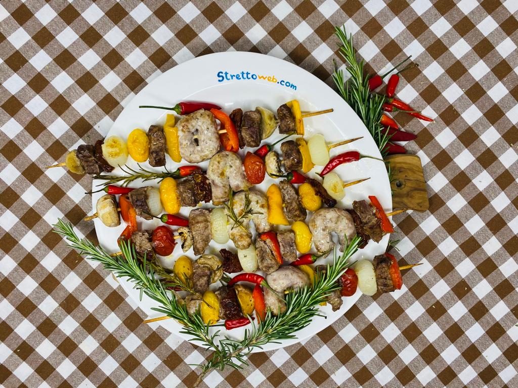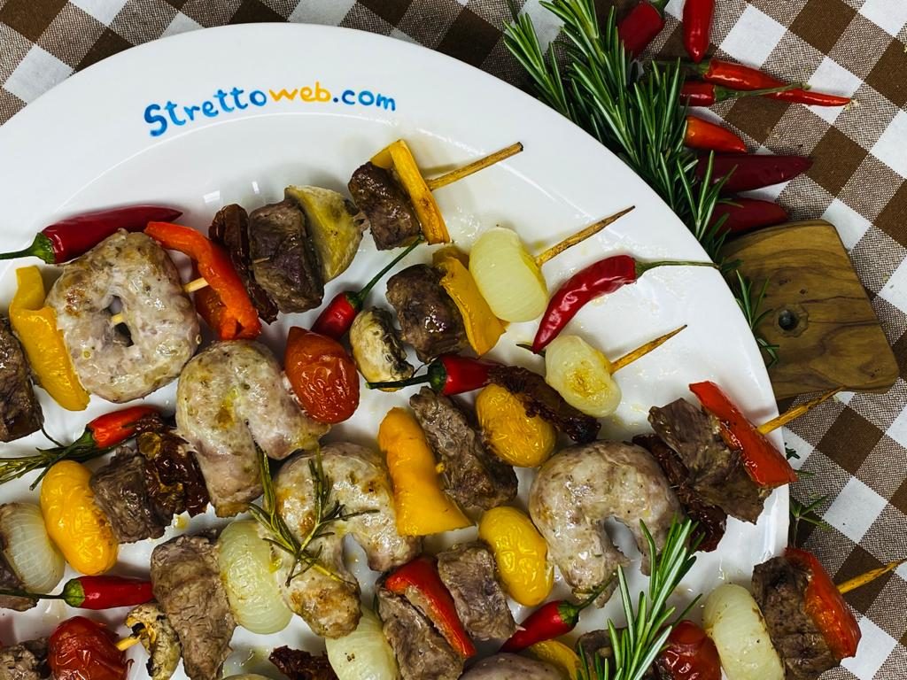 Divertenti e facili da realizzare, gli spiedini di carne e verdure sono un secondo gustoso realizzato con cubetti di carne tenera di vitello che si alternano a tocchetti di salsiccia e ad un mix di verdure, fra cui i pomodori sott’olio, uno dei Prodotti Agroalimentari Tradizionali Calabresi capace di regalare un gusto intenso a qualunque piatto.