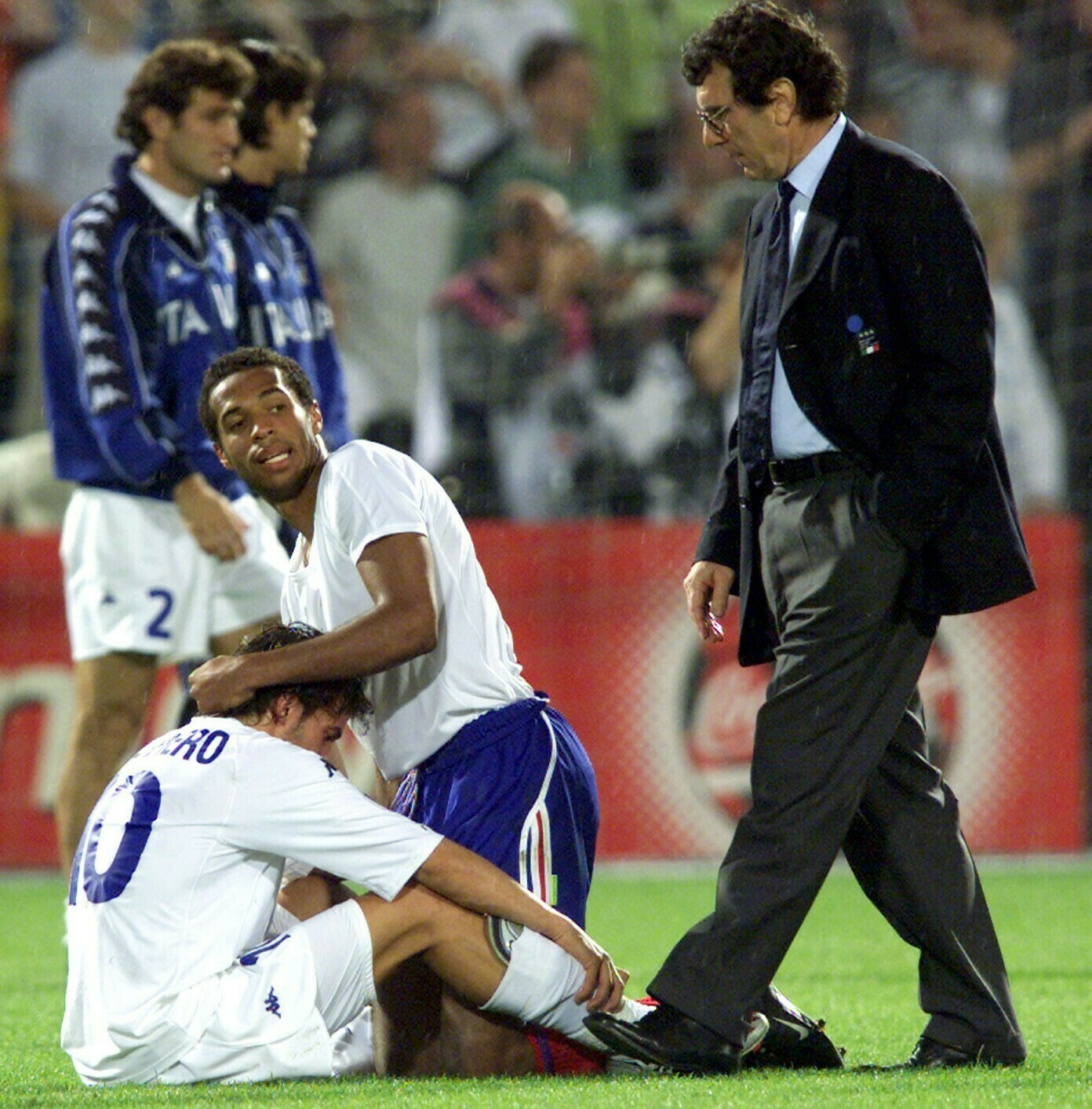 Seppur avara di successi, l’ultima parte di questo “percorso” è comunque migliore dal punto di vista dei risultati e delle emozioni. In 16 anni (dal 2000 al 2016) e cinque edizioni, l’Italia arriva due volte in finale e due volte ai quarti. L’Europeo del 2000 è sicuramente il più amaro della storia azzurra in questo torneo. La squadra di Zoff passa agilmente il girone con tre vittorie e supera senza problemi la Romania ai quarti. Contro l’Olanda succede poi quello che difficilmente si vede in un campo da calcio, complicato anche da raccontare. La squadra azzurra, sotto di un uomo per più di un tempo (espulso Zambrotta), gioca tutta la gara chiusa a riccio, difendendosi dalle scorribande orange, che hanno diverse occasioni per passare, tra cui due rigori: il primo lo sbaglia De Boer, che se lo fa parare da Toldo, il secondo Kluivert. Ma il portiere allora alla Fiorentina è l’eroe di giornata: diventa decisivo anche nella lotteria dagli undici metri, regalando all’Italia una finale che mancava da oltre 30 anni. Forse il karma, forse le strane leggi del calcio, però, confezionano a Totti e compagni una beffa bella e buona, servita come una delle più tremende. Il vantaggio di Del Vecchio contro la Francia, infatti, sembra indirizzare finalmente gli azzurri al successo, ma in pieno finale Wiltord trova il pari, a cui segue la rete decisiva di Trezeguet al Golden Gol.