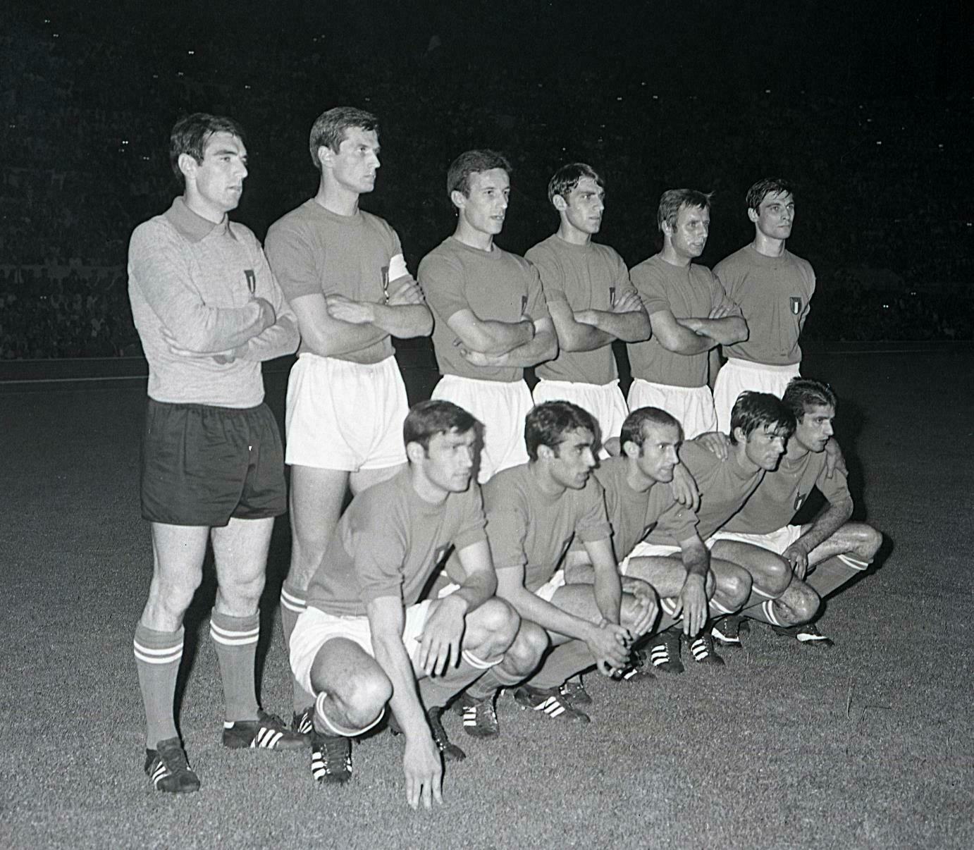 A dimostrazione di quanto difficile fosse il rapporto con questo torneo da parte degli Azzurri ci sono le prime due edizioni in assoluto, quella del ’60 e del ’64. L’Italia? Non c’è. Tanti sono ancora gli strascichi della strage di Superga e di una Nazionale da ricostruire dopo i grandi successi anteguerra, come confermato anche dai risultati poco felici dei Mondiali di quegli anni. La rinascita avviene, però, con la prima vera generazione importante di calciatori (dopo gli anni ’30), che aprirà un ciclo per gli Azzurri lungo circa 40 anni. E’ l’Italia dei Riva, dei Mazzola, dei Domenghini, degli Anastasi, dei Facchetti (e ce ne sono davvero tanti). E’ l’Italia che vince il suo primo (e finora unico) Europeo della sua storia, quello del 1968, anteprima del Mondiale di Messico ’70 in cui gli azzurri saranno costretti a cadere sotto i colpi di Pelé dopo la partita del secolo. Quel torneo vede ancora la partecipazione di poche squadre, ben 4, ma si svolge in casa, tra Roma, Firenze e Napoli. Rocambolesco, seppur breve, il cammino che conduce quella Nazionale alla vittoria. La semifinale contro l’URSS termina infatti 0-0 e per decretare la squadra vincitrice è necessario il sorteggio, tramite una monetina passata alla storia. Il primo “lancio” va a vuoto (finito su una fessura dello spogliatoio, affermò tempo dopo Facchetti), il secondo premia gli Azzurri, che in finale incontrano la Jugoslavia in un atto altrettanto tortuoso e infinito. Domenghini, infatti, solo all’80’ riesce a riprendere l’avversario per l’1-1 finale, anche dopo i tempi supplementari. Ma, in mancanza dei rigori (allora non erano ancora stati pensati), c’è bisogno del replay, che questa volta l’Italia non sbaglia: Riva e Domenghini firmano il successo davanti ad un Olimpico gremito e festoso.