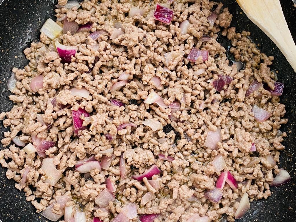 Lavate le melanzane e sbucciatele quindi tagliatele a fette di circa ½ cm ed infarinatele prima di friggerle in abbondante olio di oliva. In una padella fate rosolare la cipolla con l’olio, unite la carne tritata, salate, pepate e lasciatela cuocere per qualche minuto. In una teglia da forno disponete uno strato di melanzane fritte, spolverizzate il pecorino, create uno strato con la carne tritata e proseguite ancora con le melanzane fino all’esaurimento degli ingredienti aggiungendo anche origano e basilico. In una ciotola sbattete le uova, unite 2 cucchiai di latte ed un pizzico di sale e versate il composto sulle melanzane. Infornate lo sformato a 180 gradi per 20 minuti e servitelo caldo.