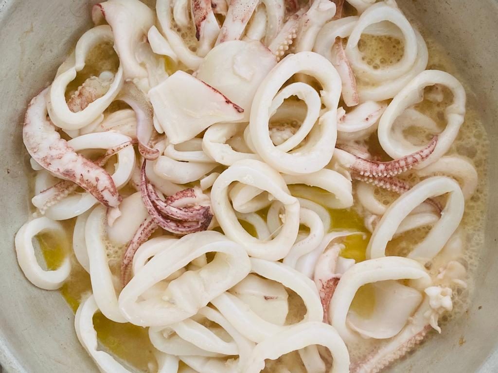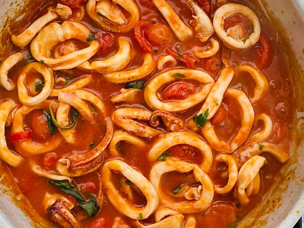 Gli spaghetti al sugo dei calamari si consumano al momento.