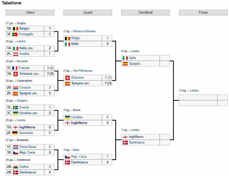 Euro 2021 entra nel vivo e si avvia verso la conclusione. Se a partire dai gironi non fosse stato chiaro, gli ottavi di finale hanno sottolineato ancora una volta come non esistano partite facili. Nel primo turno eliminatorio sono stati eliminati i detentori del titolo del Portogallo di Cristiano Ronaldo, la temuta Germania e soprattutto la Francia, squadra Campione del Mondo in carica e principale favorita del torneo, sconfitta dalla ‘piccola’ Svizzera. Si prospettano dunque dei quarti di finale di fuoco, con Belgio-Italia come big match di cartello. Chi vince affronta la vincente di Svizzera-Spagna, con gli elvetici pronti al secondo upset sulla ‘Roja’ favorita’. Nella parte opposta del tabellone scontro fra le grandi sorprese del torneo Repubblica Ceca e Danimarca, mentre l’Inghilterra, unica big nella parte bassa del tabellone, giocherà a Roma contro l’Ucraina pronta a stupire ancora.