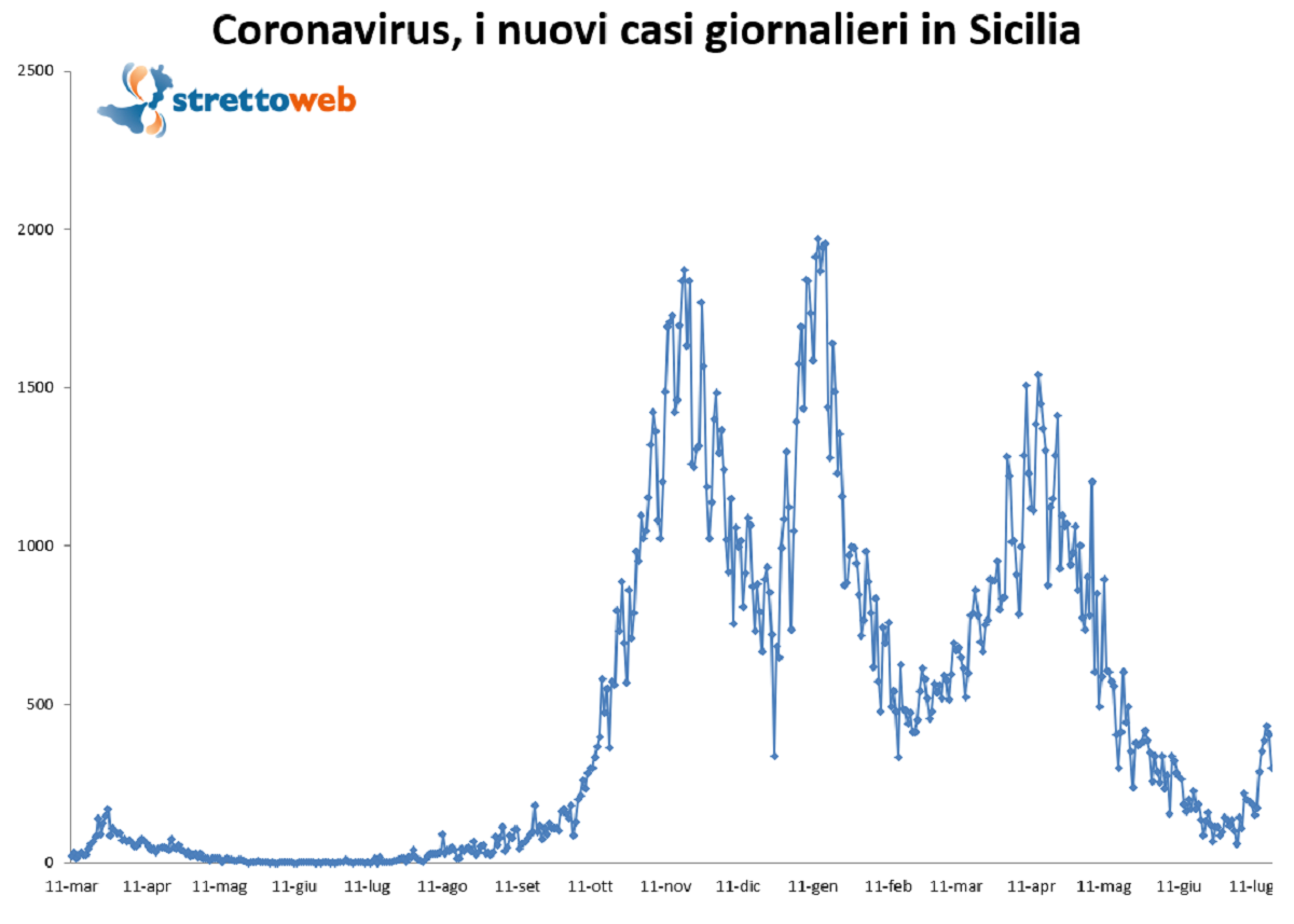 Oggi, 19 Luglio, in Sicilia 1 morto, 109 guariti e 300 nuovi casi positivi al Coronavirus su 9.523 persone sottoposte a tampone. Nelle ultime 24 ore in Sicilia è risultato positivo il 3,1% dei soggetti sottoposti a test. Secondo quanto riporta il bollettino ufficiale fornito dalla Regione, i nuovi casi rilevati oggi sono così suddivisi: