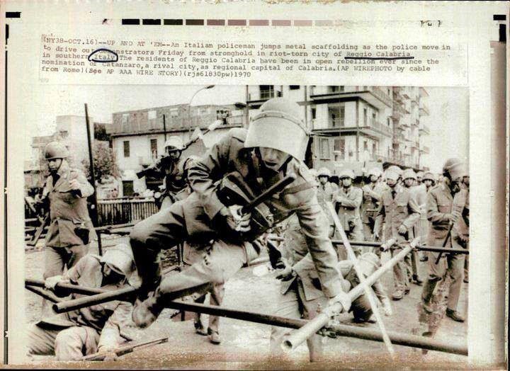 Il 14 Luglio del 1970 il Sindaco di Reggio Calabria, Piero Battaglia tenne un discorso a Piazza Italia. Erano passati nove giorni dal famoso “rapporto alla città”, in cui lo stesso Sindaco, si pose contro il suo partito, la Democrazia Cristiana, per la scelta operata dal Governo di assegnare il capoluogo di regione a Catanzaro. Sempre nella stessa sera alcuni giovani vennero arrestati dalle forze dell’ordine con l’accusa di aver bloccato il traffico nei pressi della Stazione Lido. Da lì lo scoppio dei “Moti di Reggio”. La protesta fu arcigna e sfociò nella violenza tanto che la città fu letteralmente blindata: migliaia i carabinieri, i poliziotti e militari dell’esercito inviati in Calabria per sedare la protesta. Il bilancio finale fu durissimo: 6 morti, centinaia di feriti, migliaia di arrestati.
