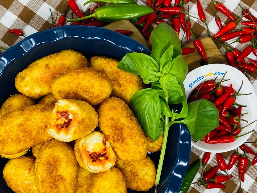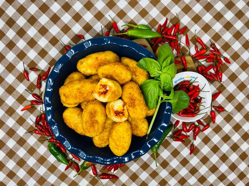 Amate dappertutto le crocchette di patate sono una tipica ricetta del sud Italia dalle origini controverse, infatti, se da un lato sembrano derivare dalle “croquettes” francesi, un piatto apprezzato alla corte di Francia nel XVIII secolo insieme al gateau di patate, dall’altro sembrano provenire dalla Andalusia dove nacquero come piatto di recupero. Oggi molto diffuse le “croquetas” spagnole si realizzano con svariati ingredienti, fra cui il prosciutto crudo a cubetti, il pollo, il tonno ed il baccalà. Farcite invece con la ‘nduja di Spilinga DOP e la provola silana le crocchette di patate calabresi sono così buone che non temono confronti!