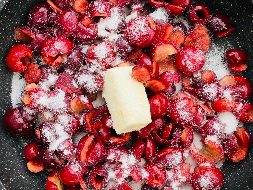 Lavate e snocciolate le ciliegie e fatele cuocere in padella per 5 minuti con il burro e lo zucchero. Aggiungete l’aceto balsamico e proseguite la cottura per 10 minuti ancora. Tenete da parte la salsa alle ciliegie ed infarinate le fettine di maiale, quindi fatele cuocere in padella col burro da entrambi i lati ed aggiungete un pizzico di sale e di pepe. Unite il condimento alle ciliegie e servite.