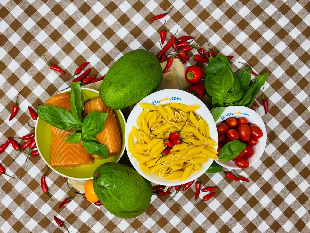 Piatto estivo ricco di gusto e validi nutrienti le penne al pesto di avocado e salmone sono caratterizzate da un condimento cremoso realizzato con l’avocado a cui si aggiungono cubetti di salmone affumicato e pomodorini pachino.