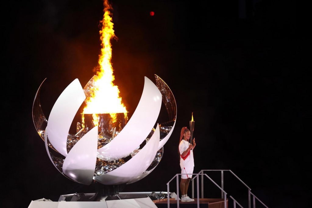 Ballerini e cantanti, coreografie e intermezzi scenografici, le sfilate di tutti i Paesi partecipanti con le loro bandiere e l’arcobaleno di colori delle loro divise. Poi il discorso del presidente del Cio Bach e per concludere, dopo quasi 4 ore di spettacolo, la cerimonia d’apertura delle Olimpiadi di Tokyo si è ufficialmente conclusa con l’accensione del braciere olimpico. La torcia è stata portata da ex atleti, atleti paralimpici, bambini e anche un medico e un’infermiera, simbolo della lotta contro il Covid. L’ultima tedofora scelta è stata, senza dubbio, l’atleta più rappresentativa del Giappone il Paese del Sol Levante si è affidato a Naomi Osaka, pluricampionessa Slam nel tennis, che ha avuto il compito di accendere il tripode e dare ufficialmente inizio ai Giochi. ‘Spaesata’ come spesso dà l’idea di essere (basta guardarla durante le premiazioni del tennis), Naomi Osaka ha percorso la scalinata verso il braciere appoggiando la fiaccola, dando il via alle fiamme, rosse come le sue treccine, simbolo dell’inizio di oltre due settimane di grande sport.