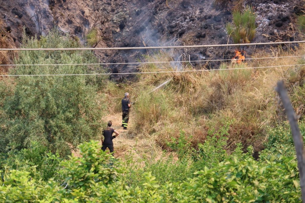 Continua la strenua lotta alle fiamme che da ieri divampano sulle colline a sud di Reggio Calabria. Ad oltre 24 ore di distanza dalla prima segnalazione, sull’incendio della zona di Oliveto sono impegnate 2 squadre di Calabria Verde e 4 dei Vigili del Fuoco per un totale di 40 uomini, fra cui un Dos (direttore operazioni spegnimento) di Calabria Verde e due dei vigili. Dall’alto procedono a gettare acqua un elicottero dell’ente regionale, due canadair ed un elicottero della Protezione civile nazionale.