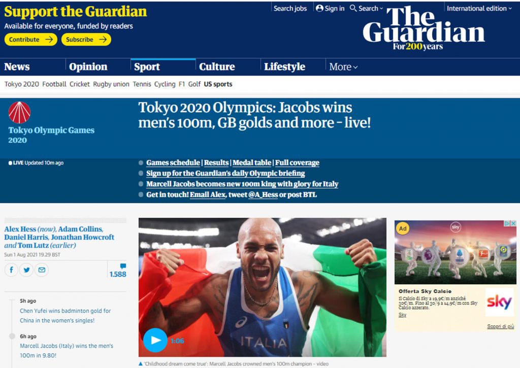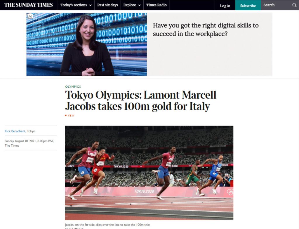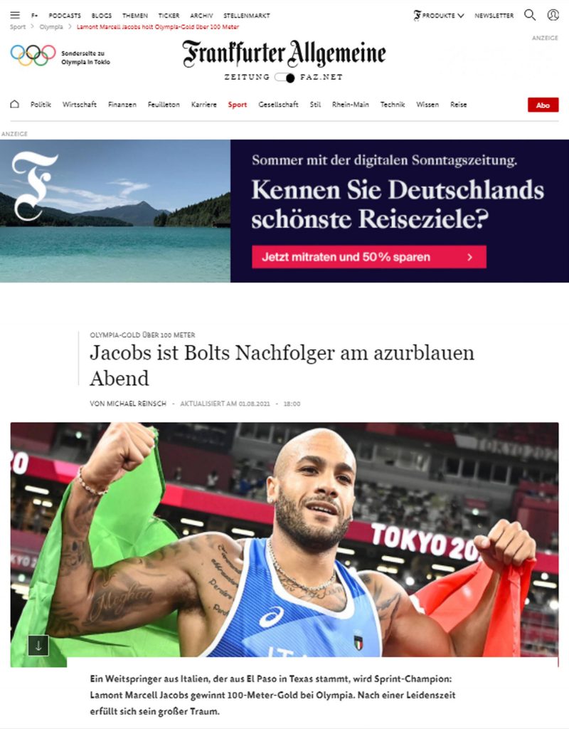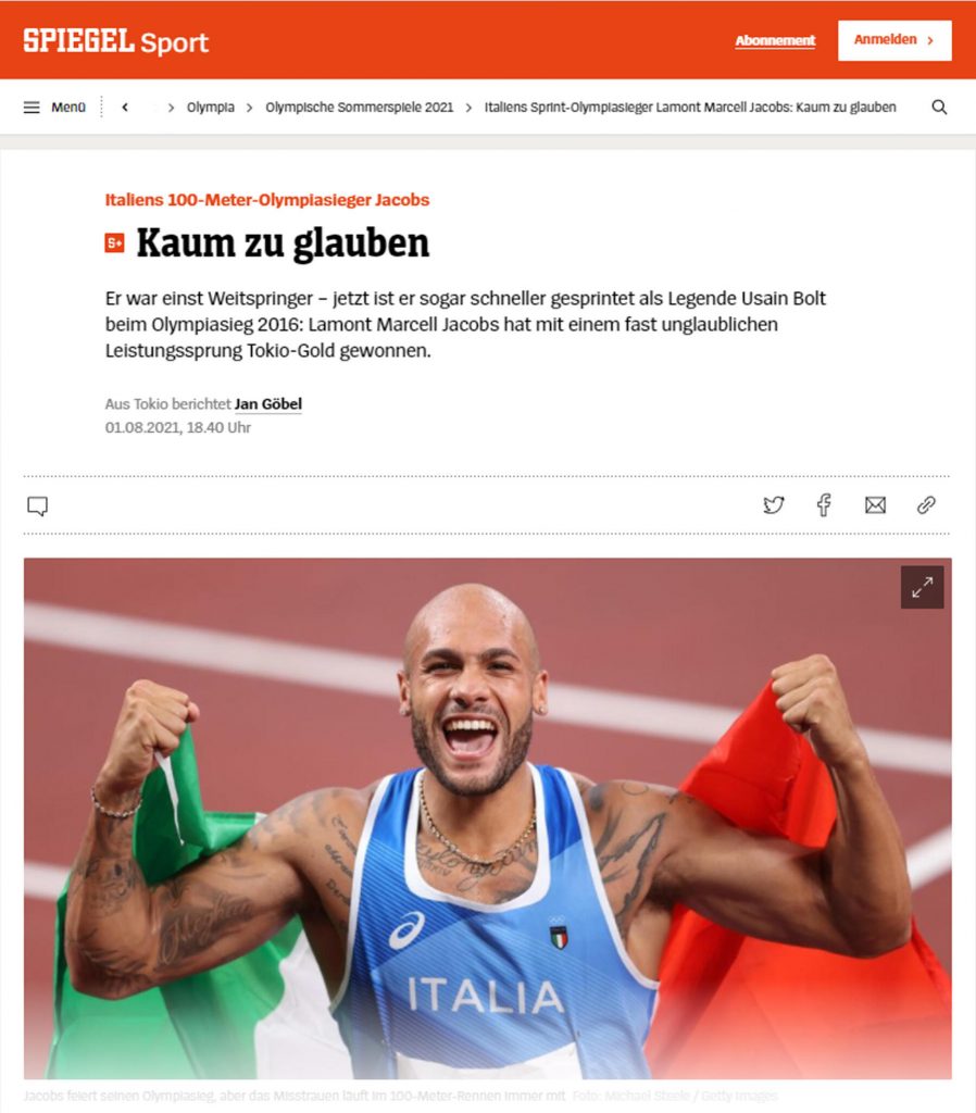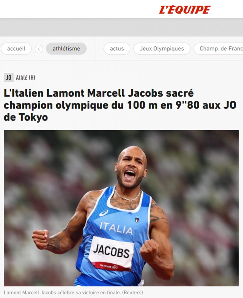Il nuovo re della velocità è italiano! Nel pomeriggio di ieri, a pochi minuti dall’oro vinto da Gianmarco Tamberi nel salto in alto, è arrivato anche quello di Marcell Jacobs nella gara regina dell’atletica, i 100 metri. Una medaglia storica, la prima dell’Italia nella specialità. I giornali di tutto il mondo hanno celebrato il successo dell’atleta italiano, con attestati di stima che vanno dalla Francia alla Germania, dalla Spagna all’Inghilterra. A proposito di Inghilterra però, c’è da segnalare una nota negativa. Il ‘Mirror’ ha scelto di sminuire la vittoria dell’italiano con un titolo poco comprensibile. Gli inglesi hanno parlato di “100 metri di Google“, riferendosi alla scarsa caratura (a loro dire) degli sprinter in finale da cercare su Google per sapere chi fossero: il tutto pur di togliere valore al successo storico dell’Italia. Forse qualcuno non si è ancora ripreso dalla finale dell’Europeo…