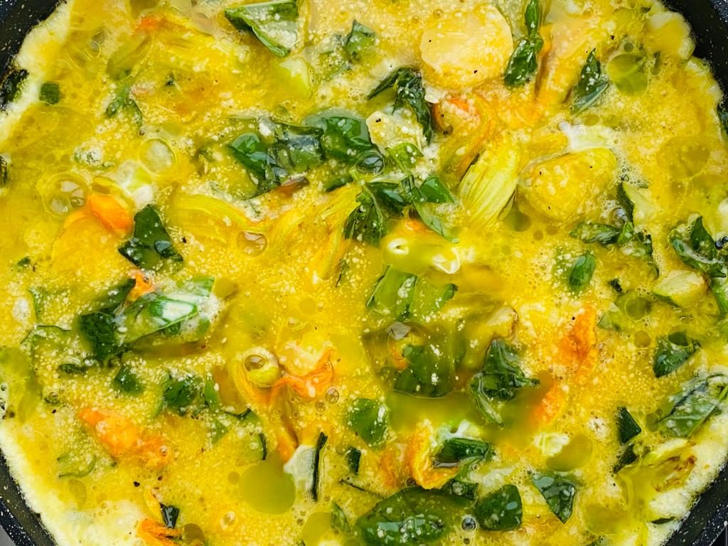 Colorata, leggera e molto gustosa la frittata ai fiori di zucca si realizza con fiori freschi e pochissimi altri ingredienti. Squisita sia tiepida che fredda è una pietanza estiva ideale per gustare la genuinità dei prodotti di stagione.