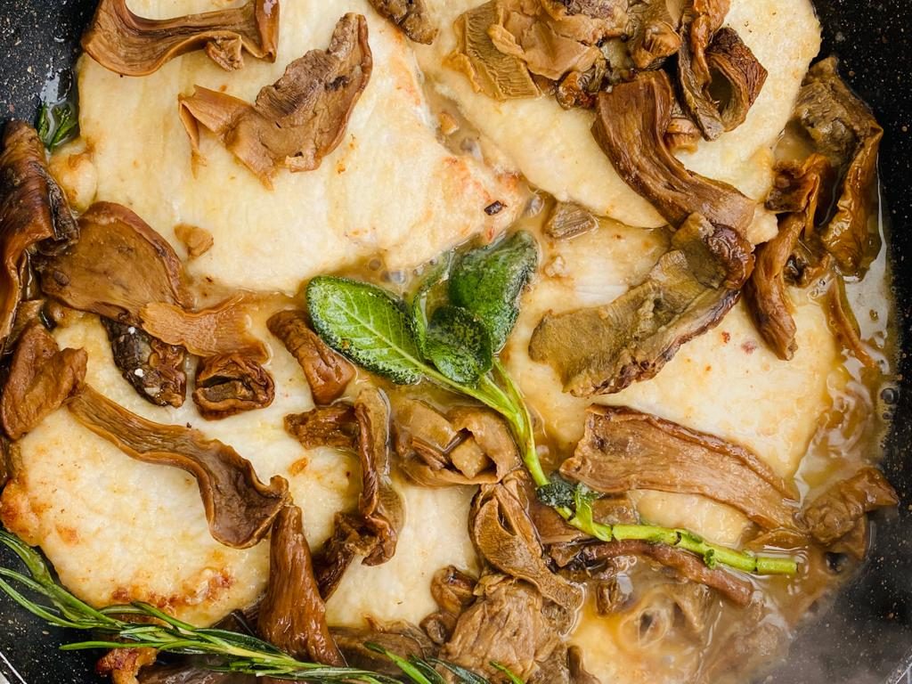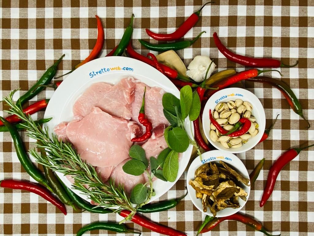 Mettete in acqua calda i funghi secchi per farli rinvenire e nel frattempo passate le fette di lonza nella farina premendo bene per farla aderire e poi rosolatele in padella con olio di oliva caldo da entrambi i lati. Adesso fate dorare l’aglio con l’olio, la salvia ed il rosmarino ed unite quindi le fette di lonza ed i funghi sgocciolati. Sfumate col vino bianco, aggiungete un pizzico di sale e di pepe e proseguite la cottura per circa 10 minuti. Completate il piatto con la granella di pistacchio.