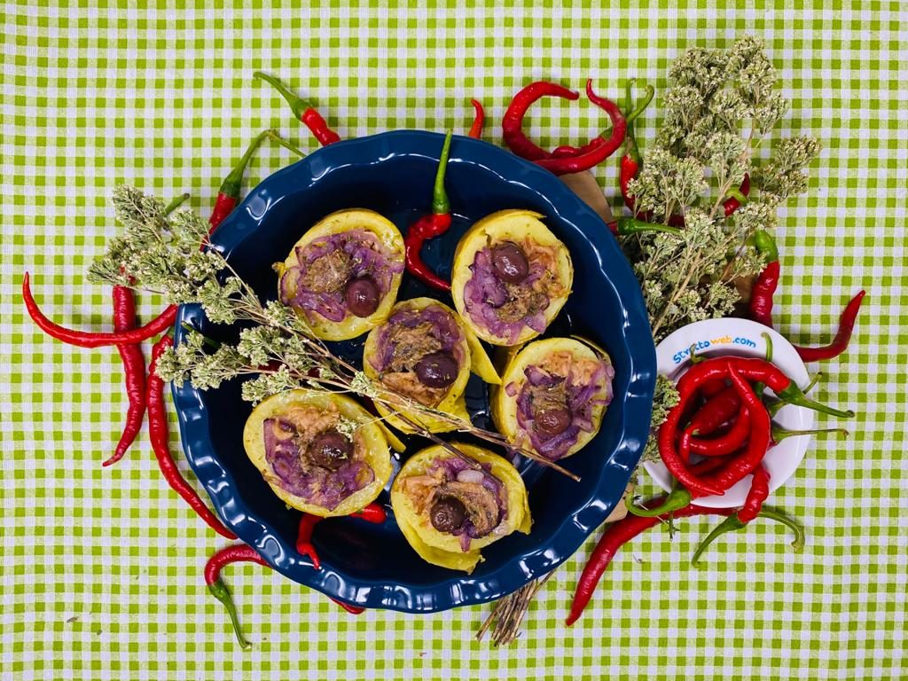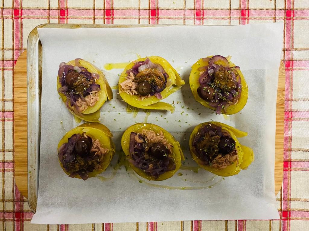 Contorno nutriente, sfizioso e facile da preparare le patate al forno ripiene si lessano intere e poi si dividono a metà per essere farcite. Taleggio e porcini o guanciale, provola affumicata ed origano sono alcune delle tante farciture possibili. I sapori calabresi sono racchiusi invece in questo squisito ripieno di alici, tonno, cipolle rosse di Tropea ed olive.