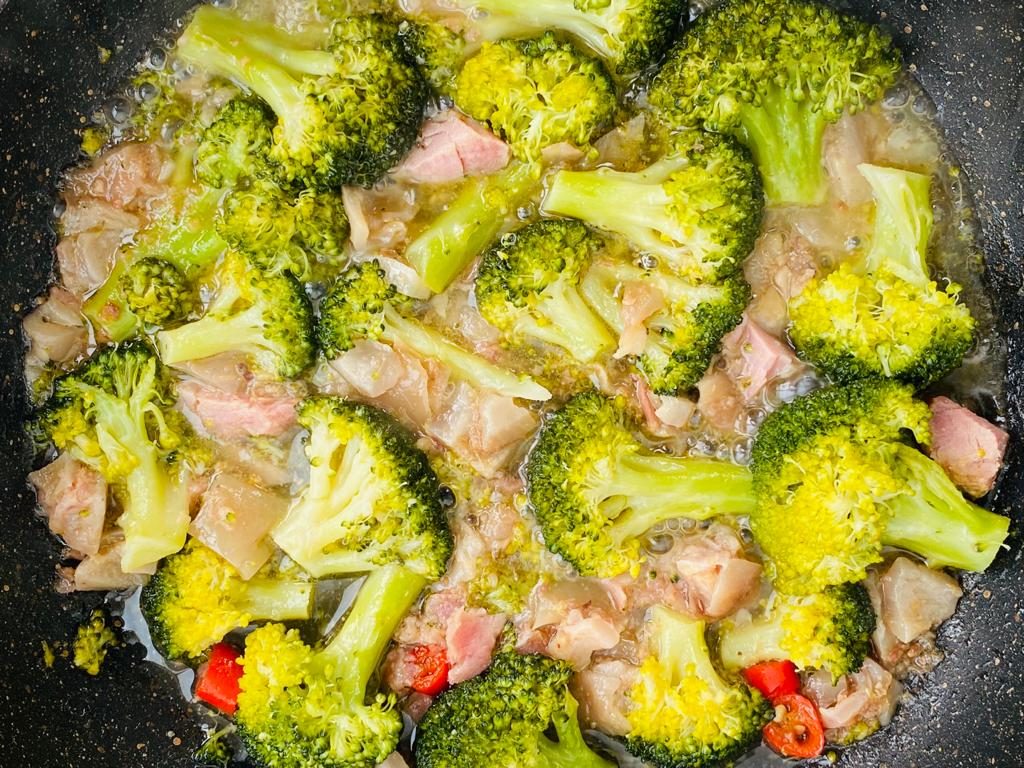 Pulite i broccoli ricavando le cimette e fatele cuocere coperte in padella con olio, uno spicchio d’aglio, il peperoncino e poca acqua per 15 minuti. Unite i curcuci e fateli sciogliere. Scolate la pasta al dente, amalgamatela al condimento e completate con una spolverata di pepe nero.