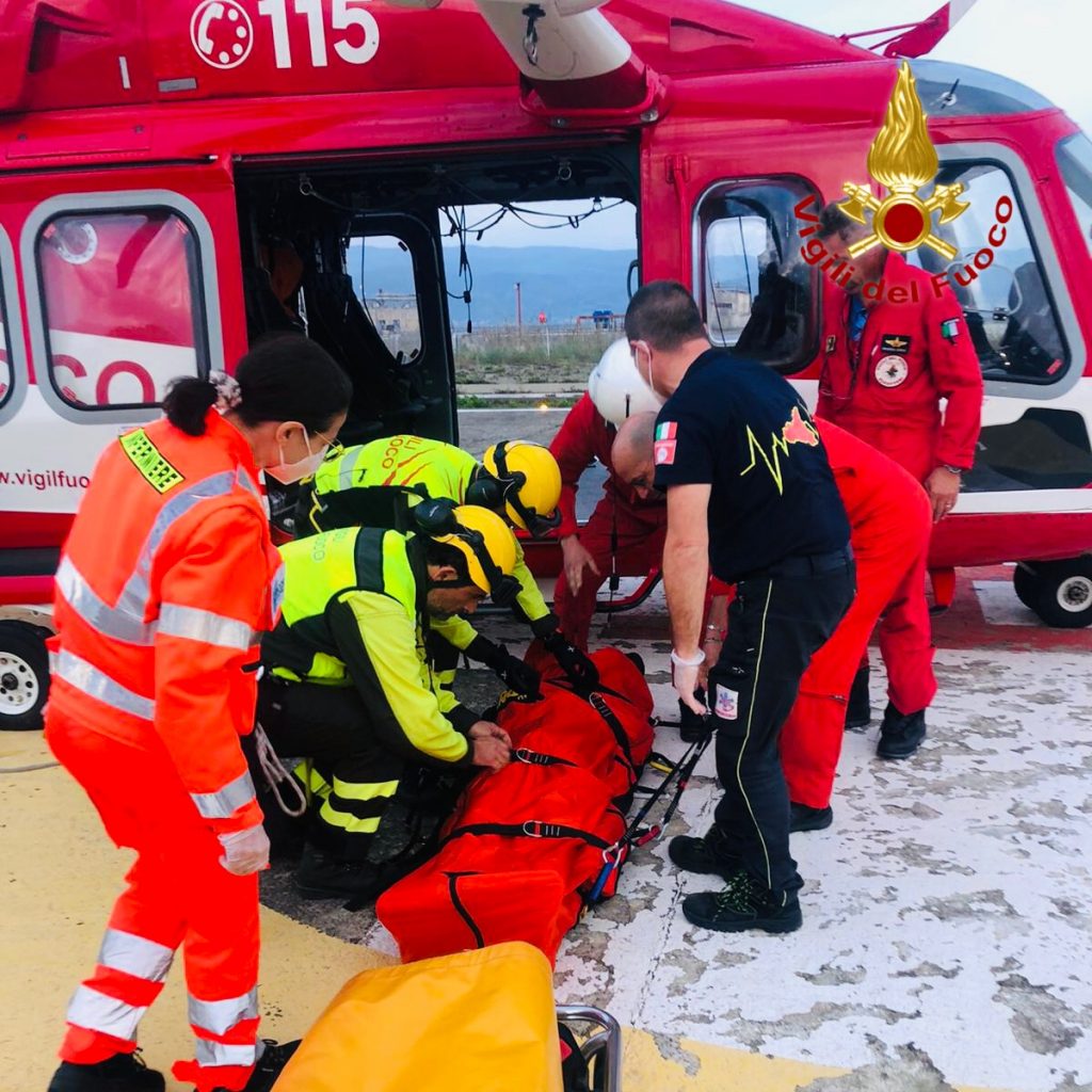 Alle ore 15.00 circa di oggi la squadra dei vigili del fuoco di Lipari è intervenuta per soccorso a persona in località Valle Muria. Il malcapitato di circa 30 anni, per cause ancora da definire, è scivolato da un’altezza di due metri riportando un trauma cranico e una frattura al polso. Il recupero della persona infortunata per il successivo trasferimento al Policlinico di Messina è avvenuto mediante l’elicottero AW139 Drago 142, proveniente dal nucleo elicotteri VVF di Catania del reparto volo VVF. Attualmente è in corso il trasferimento presso il Policlinico di Messina. In alto la FOTOGALLERY, in basso il VIDEO del salvataggio.