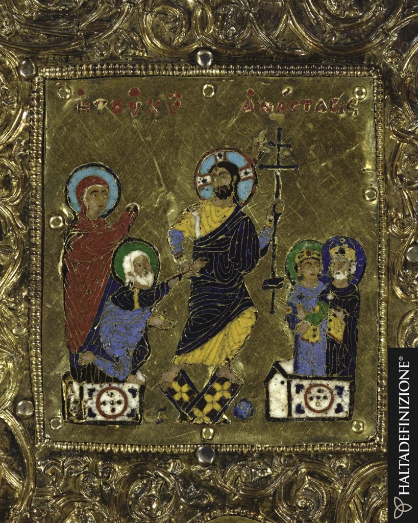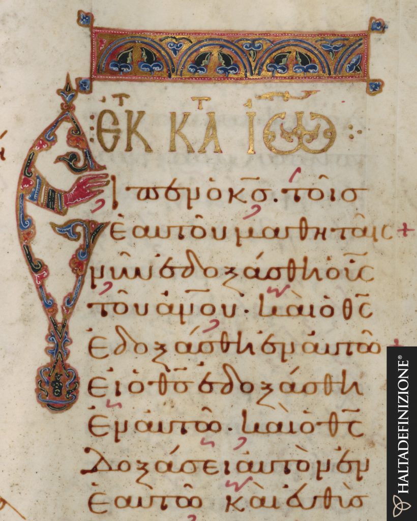 valorizzazione del prezioso “Evangeliario” grazie al finanziamento di Gruppo Acea S.p.a., che ha visto la realizzazione di una digitalizzazione completa e di una campagna fotografica in alta risoluzione, condotte rispettivamente dal Laboratorio di fotoriproduzione della Biblioteca comunale degli Intronati e da Haltadefinizione, tech company della casa editrice Franco Cosimo Panini specializzata nella digitalizzazione di dipinti, documenti e manoscritti antichi, in collaborazione con il partner tecnologico Memooria. Il cosiddetto “Evangeliario”, che è da considerarsi propriamente un lezionario, poiché contiene le lectiones tratte dai quattro Vangeli, da leggere durante le celebrazioni liturgiche di rito bizantino per l’intero anno, rappresenta, per quanto riguarda la legatura, una magnifica testimonianza dell’arte bizantina e veneziana. La coperta, in argento dorato, su cui sono fissati numerosi smalti cloisonné di riutilizzo, è un’opera di oreficeria collocabile cronologicamente tra la seconda metà del secolo XIII e l’inizio del XIV; le placche di smalto bizantine risalgono a epoche diverse e sono databili tra la fine del secolo X e il XIII. La compagine in pergamena è riccamente miniata con quattro figure a piena pagina su fondo oro raffiguranti gli evangelisti seduti dinanzi allo scrittoio, su cui sono posti gli strumenti di lavoro. L’apparato illustrativo del testo, inoltre, è caratterizzato da una grande varietà di iniziali miniate antropomorfe, vegetali e zoomorfe eseguite con notevole cura e