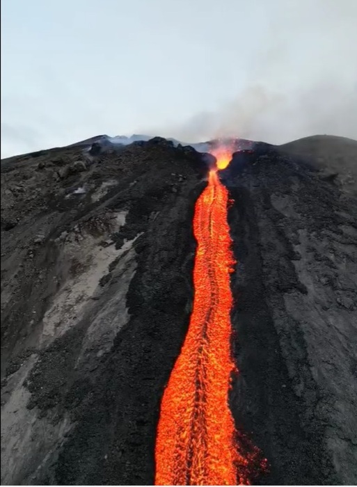 Continua a essere ben alimentata la colata lavica che, da ieri, fuoriesce dal settore craterico di nord-est dello Stromboli e che, percorrendo il pendio della Sciara del fuoco, arriva sino al mare. Questa mattina è stato registrato un ulteriore crollo parziale nel settore centrale dell’area craterica dello Stromboli. Il crollo ha prodotto un aumento del tremore fino a valori molto alti e l’impatto del materiale in mare ha generato un’onda di tsunami al di sotto della soglia di allarme. Questa attivita’ di continui crolli, legata al fenomeno effusivo, e’ ancora in atto.
